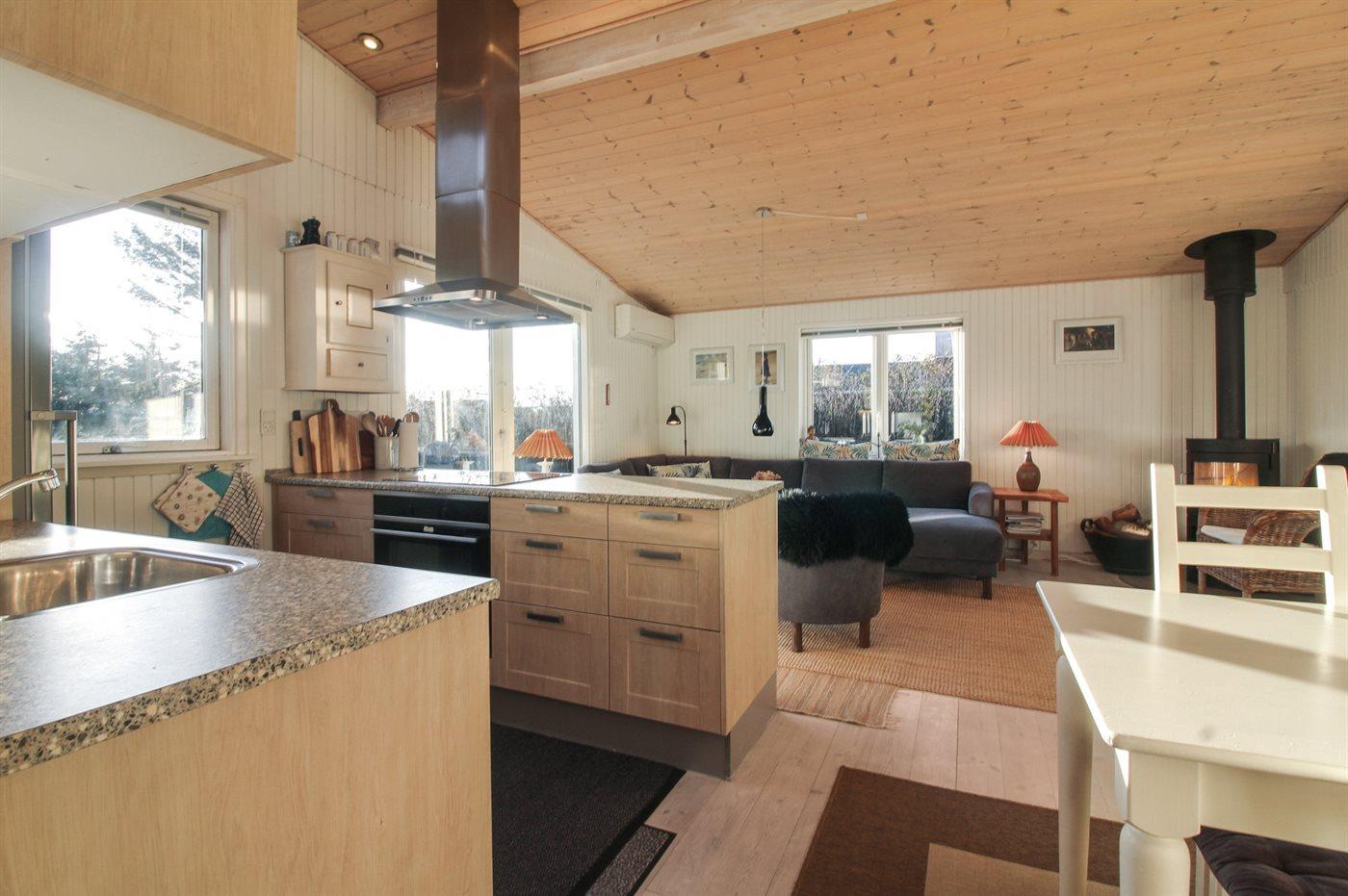 Køkkenet er udstyret med 1 køleskab. Der er 4 keramiske kogeplader, varmluftovn, mikrobølgeovn samt opvaskemaskine.