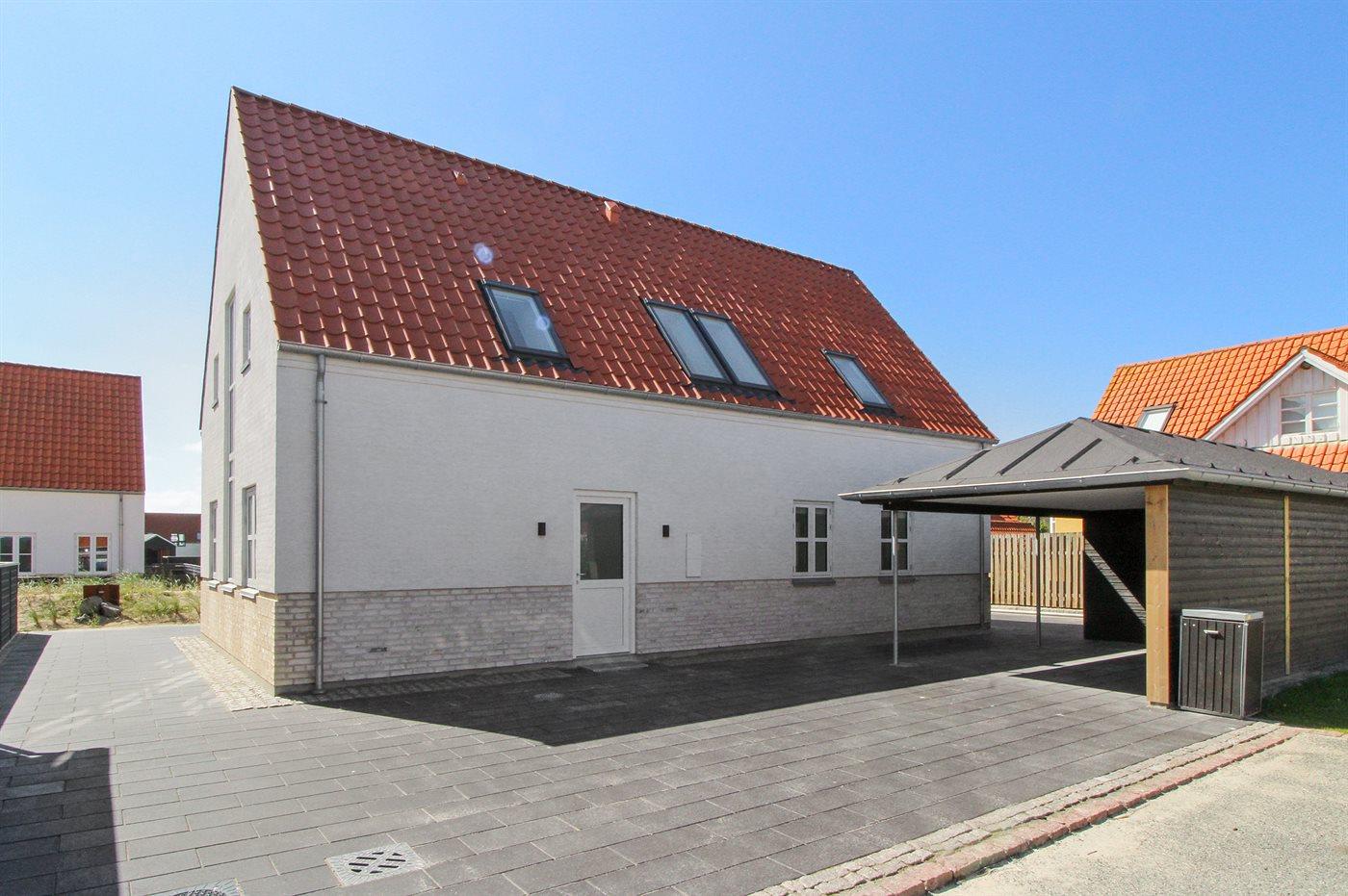 Ferieboligen er beliggende på en 331 m² stor havegrund. Der er 600 m til havet. Nærmeste forretning er beliggende i en afstand af 300 m. Til ferieboligen hører 175 m² terrasseareal. Der er redskabsrum. Der er carport til rådighed. Parkering ved ferieboligen.