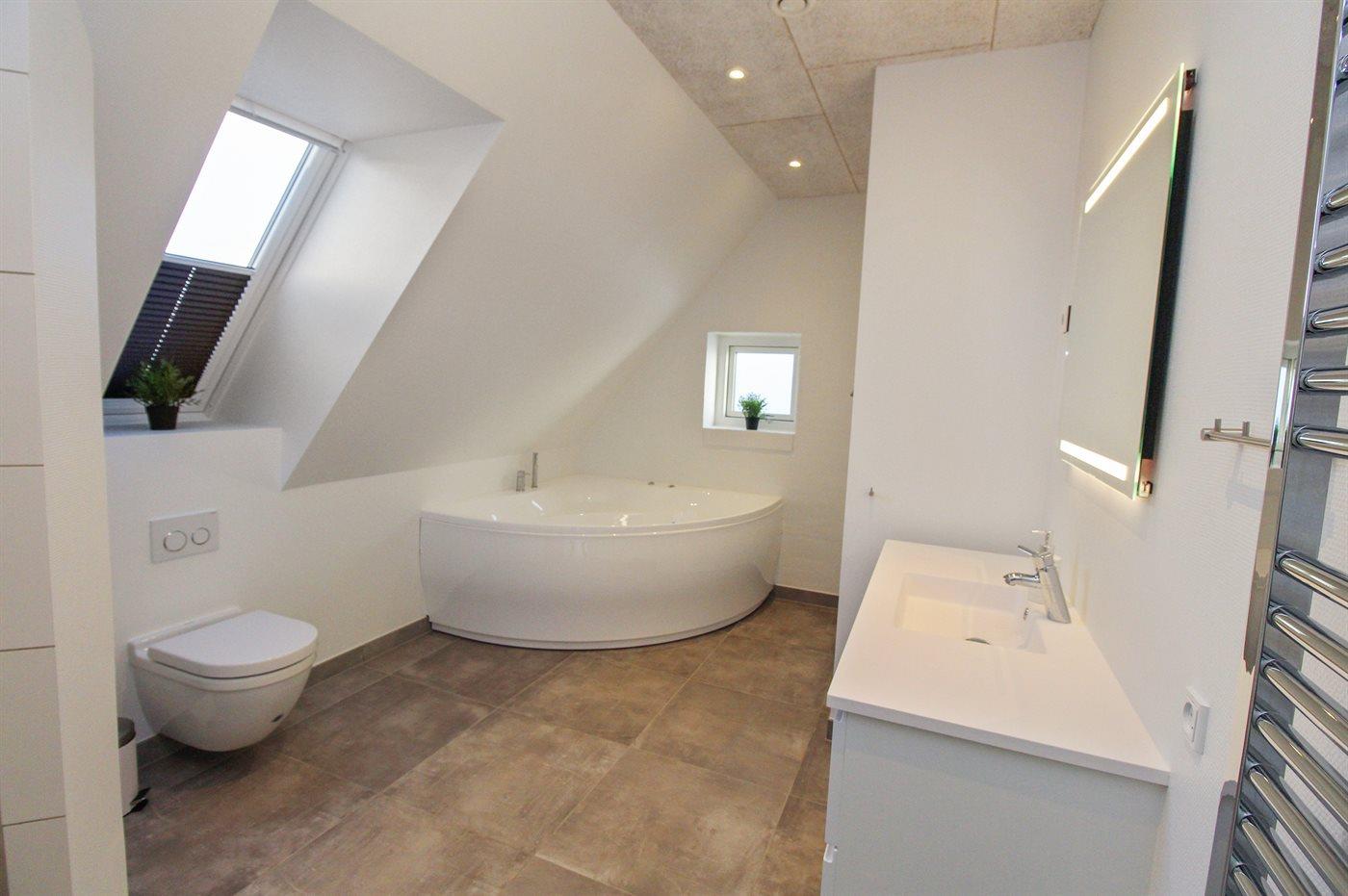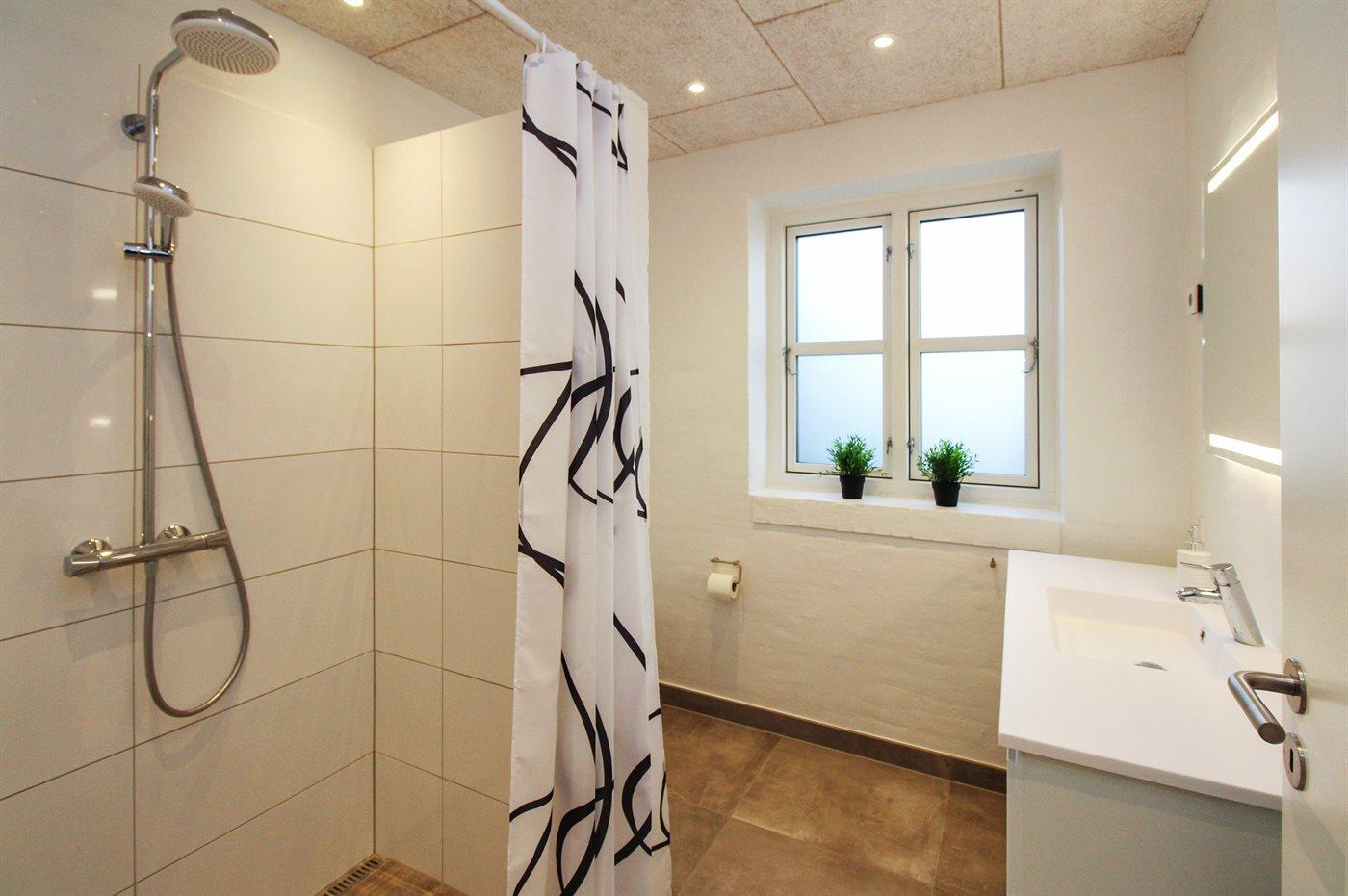 Der er 2 badeværelser med bruseniche og 2 toiletter. Der er gulvvarme på 1 badeværelse.