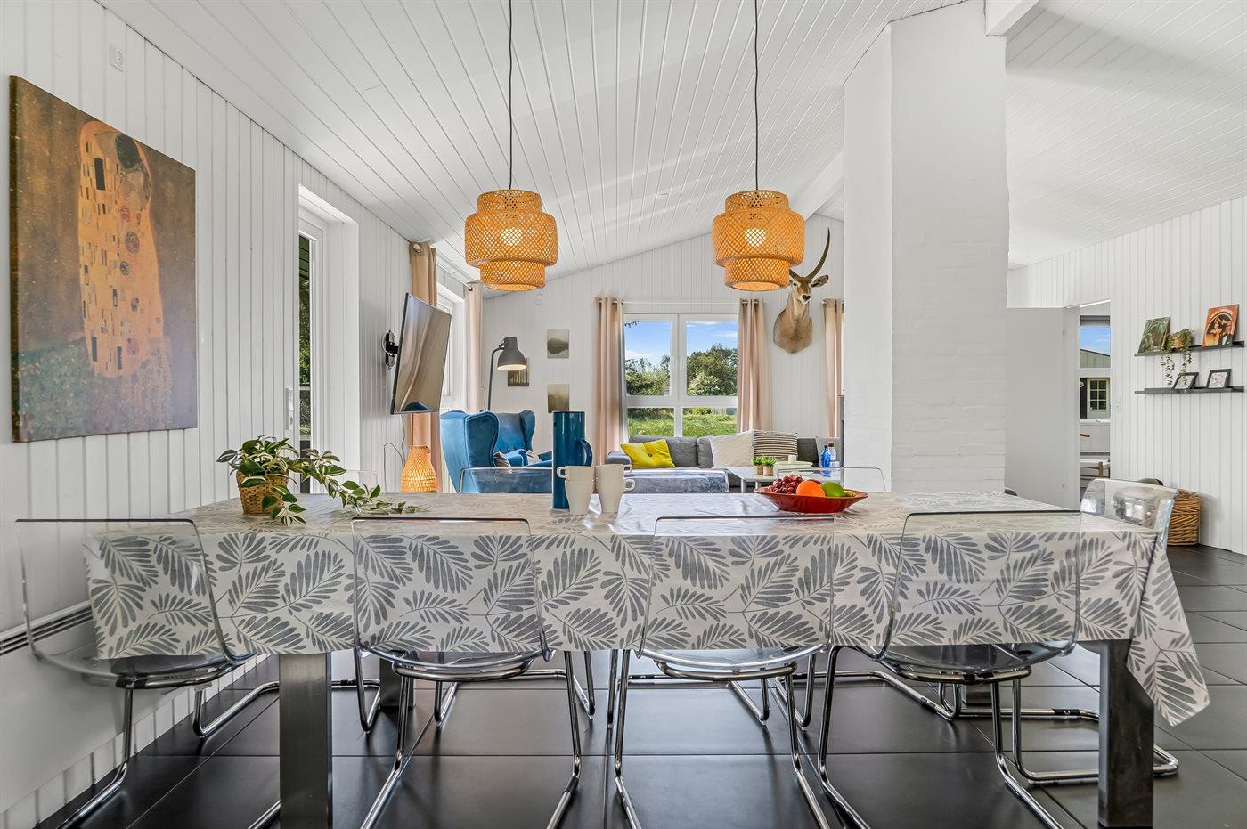 Sommerhuset egner sig til 12 personer. Ferieboligen er på 130 m² og er bygget i 2014. Det er tilladt at medbringe 2 husdyr. Ferieboligen har vaskemaskine. Tørretumbler. Frysekapacitet på 50 liter. Der er desuden brændeovn.