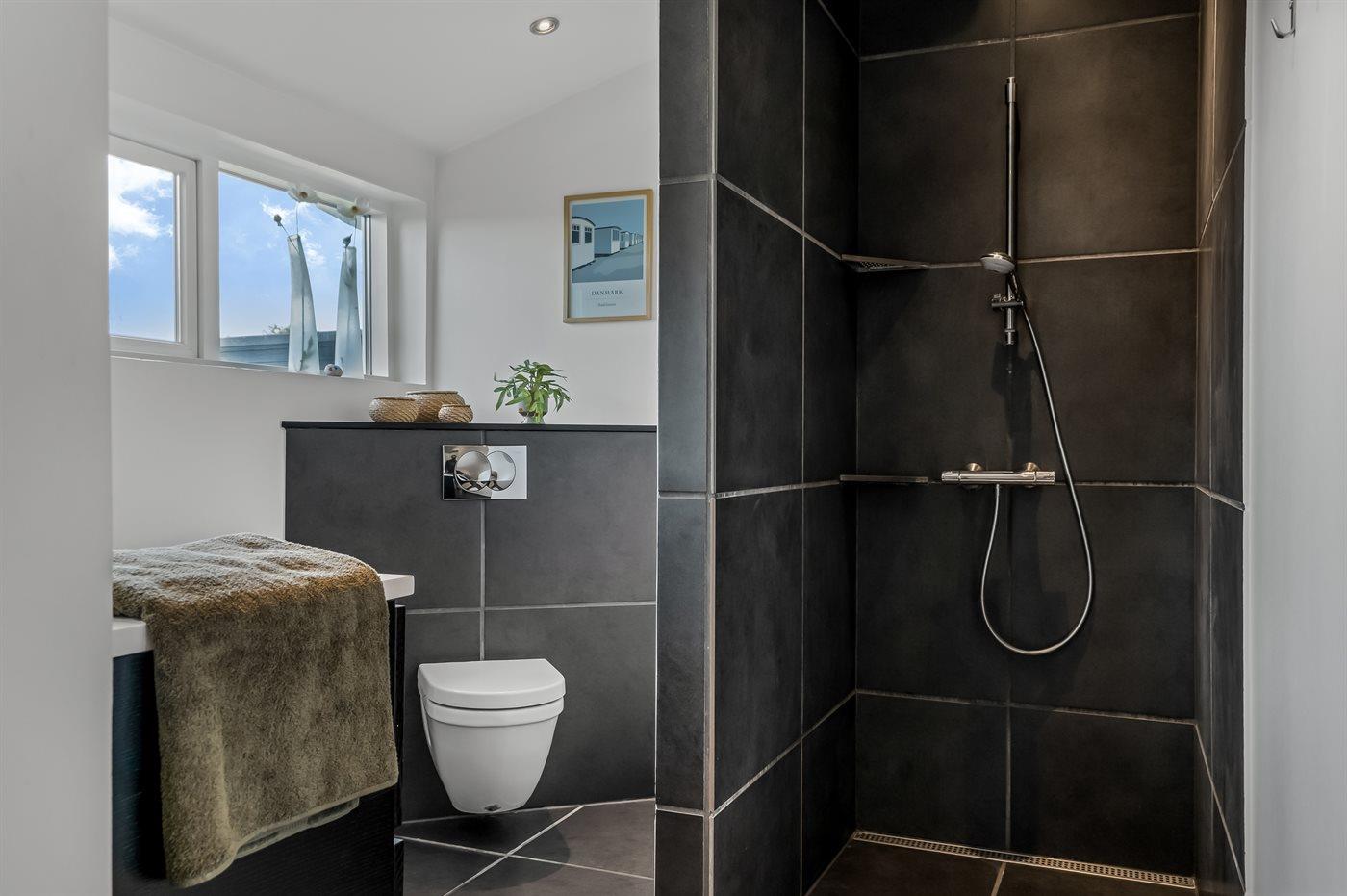 Der er 2 badeværelser med bruseniche og 2 toiletter. Der er gulvvarme på 2 badeværelser.