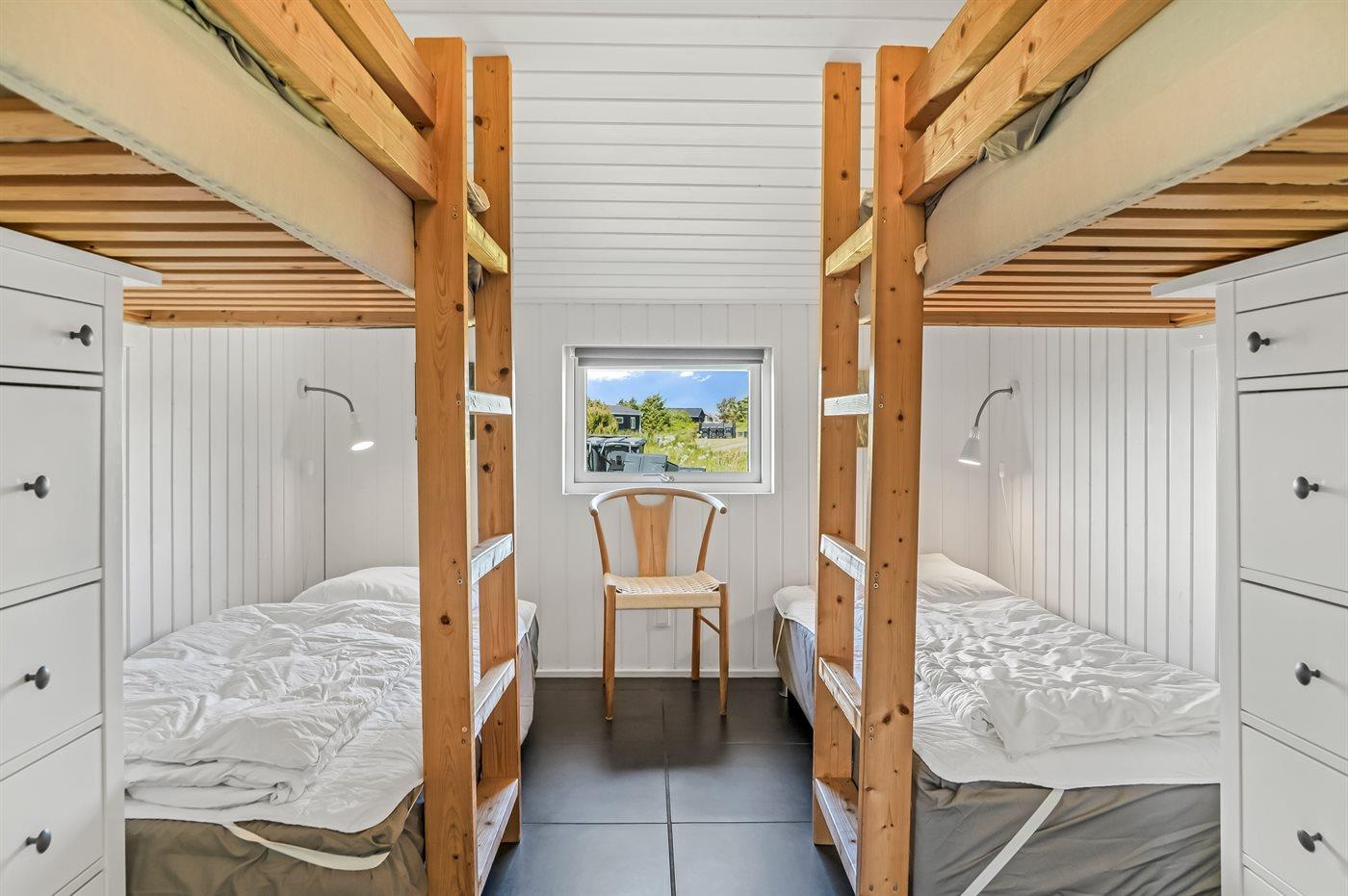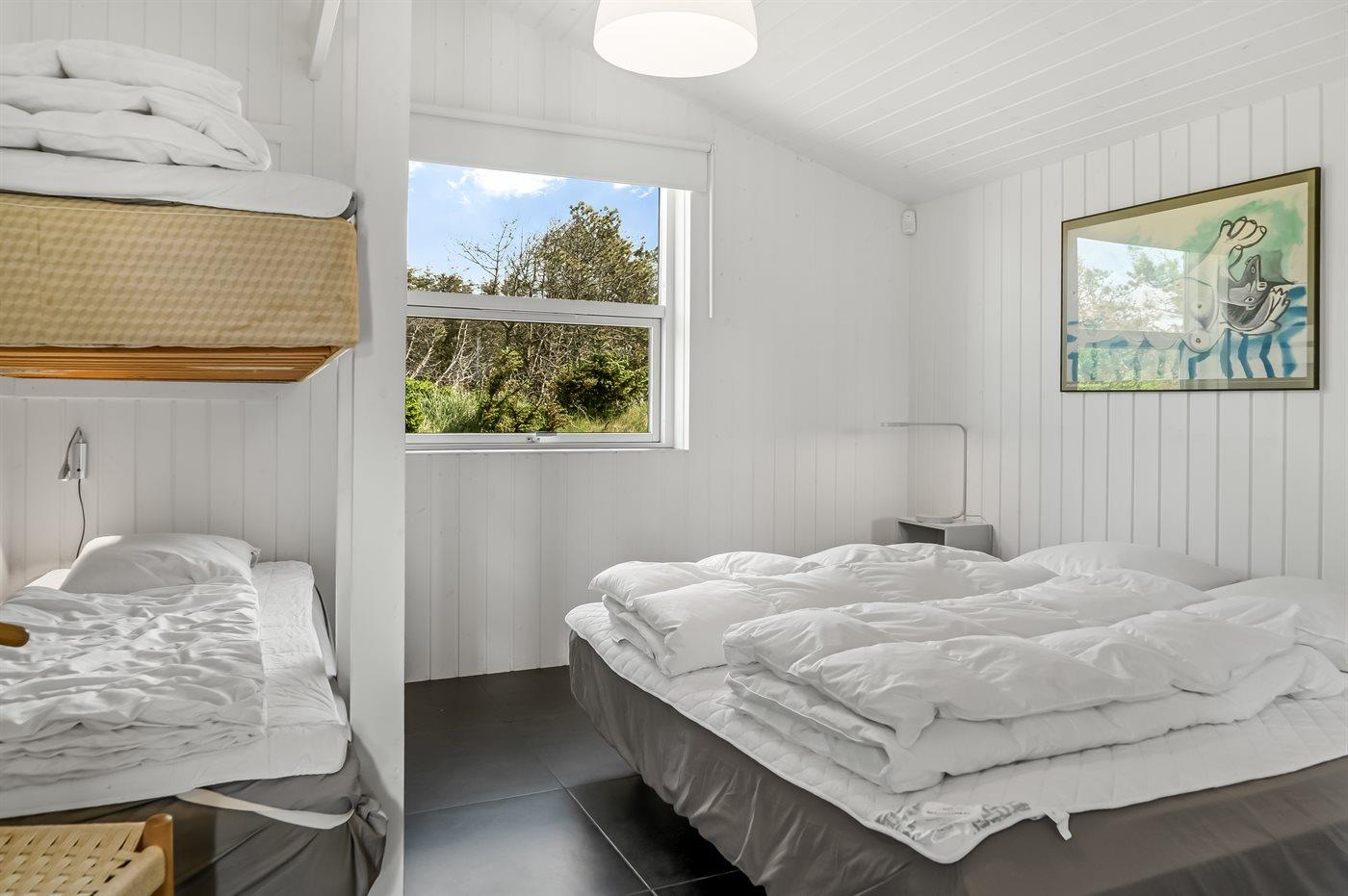 Der er i alt 4 soveværelser. Sovepladserne fordeler sig på: 6 sovepladser i dobbeltsenge. 6 sovepladser i køjesenge.- 2 af disse sovepladser befinder sig i et anneks.