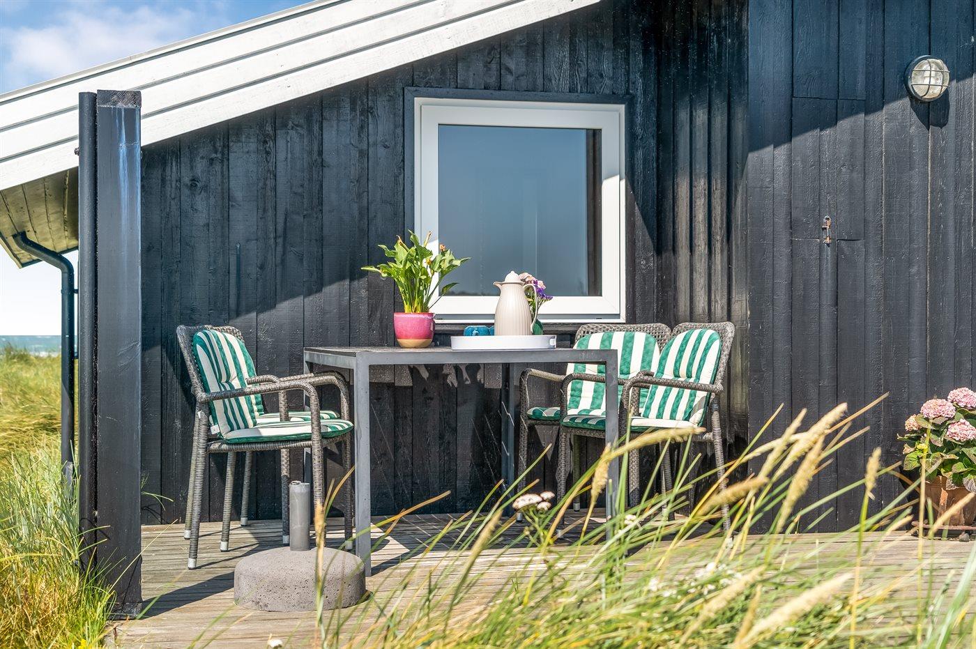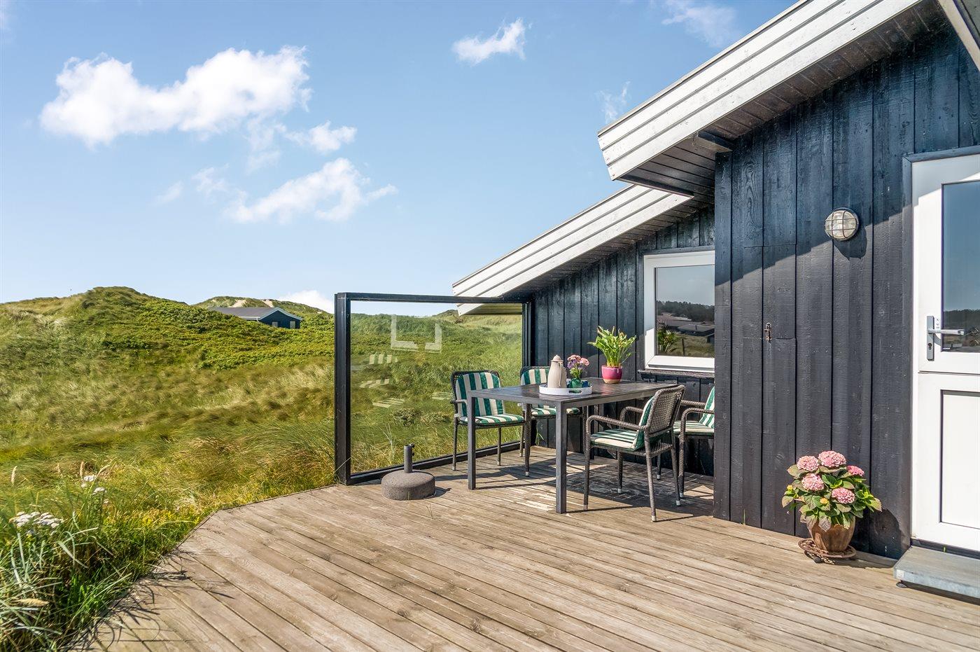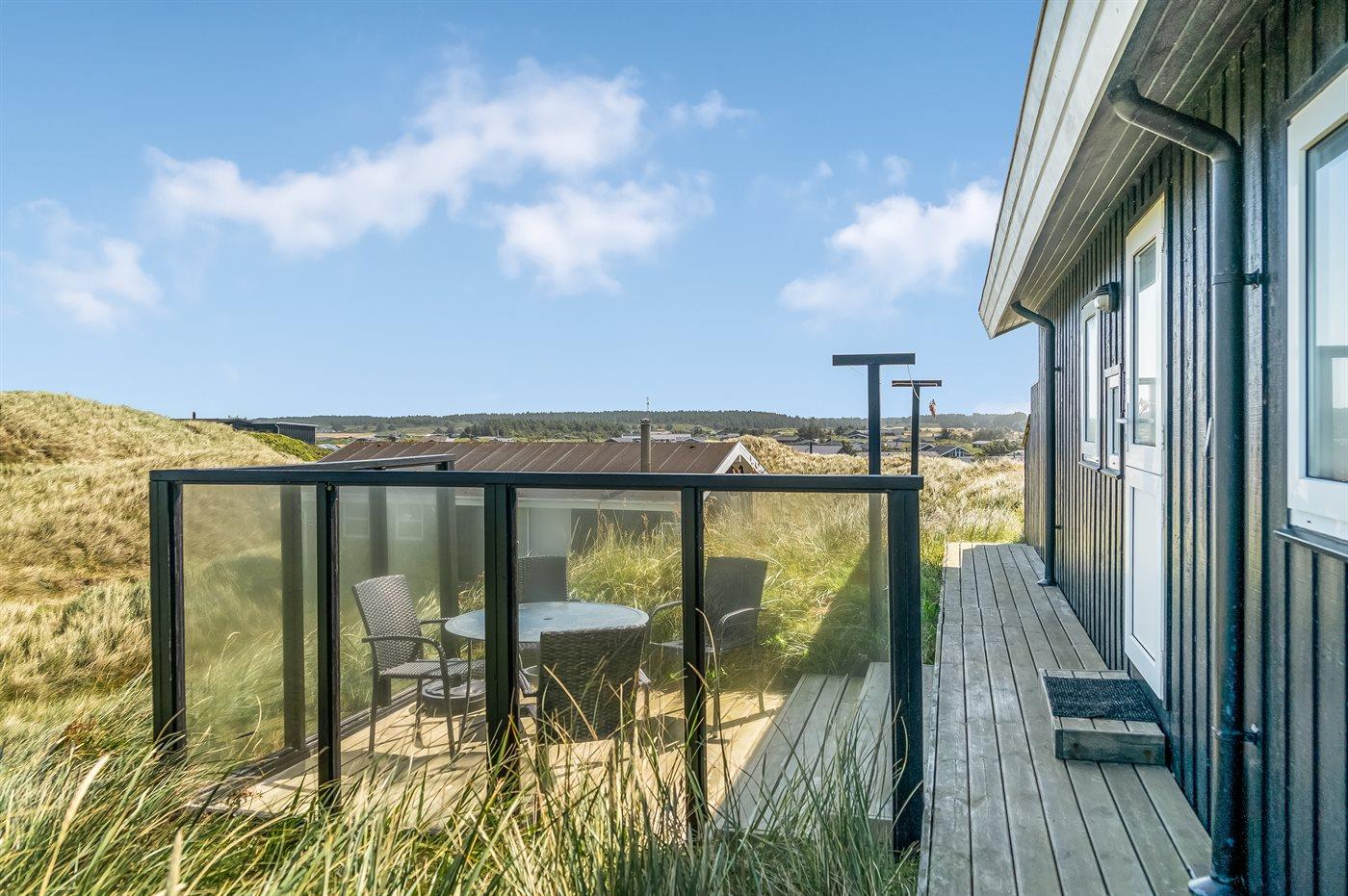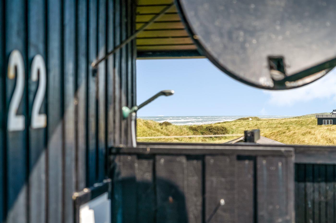 Ferieboligen er beliggende på en 500 m² stor klitgrund. Der er 100 m til havet. Nærmeste forretning er beliggende i en afstand af 2000 m. Til ferieboligen hører 25 m² terrasseareal. Gynge. Udendørs bruser. Parkering ved ferieboligen.