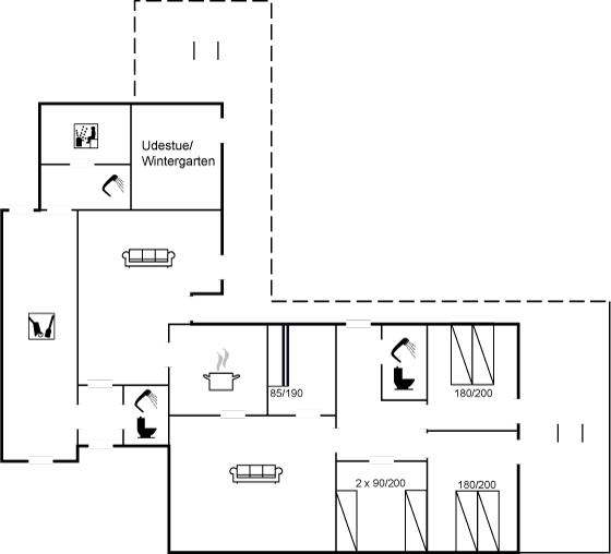 Der er i alt 4 soveværelser. Sovepladserne fordeler sig på: 6 sovepladser i enkeltsenge. 2 sovepladser i køjeseng.