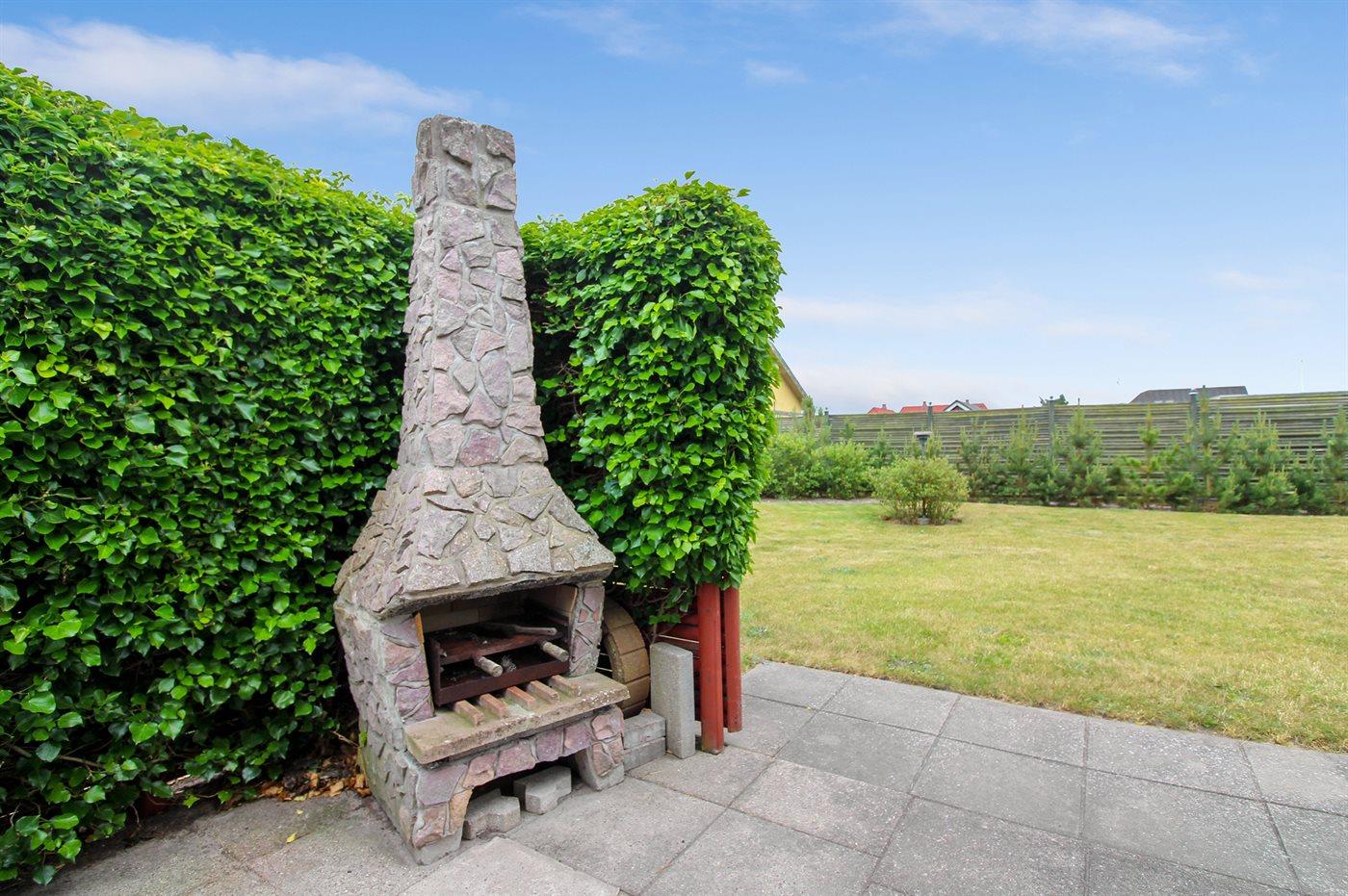 Ferieboligen er beliggende på en 700 m² stor naturgrund. Grunden er indhegnet. Der er 500 m til havet. Nærmeste forretning er beliggende i en afstand af 600 m. Der er en golfbane i en afstand af 800 m. Til ferieboligen hører 40 m² terrasseareal. Der er redskabsrum. På lune aftener sørger en udendørs pejs for hyggelig stemning. Der findes Weber gasgrill. Der er garage til rådighed. Parkering ved ferieboligen.