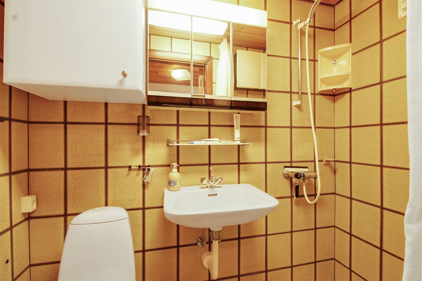 Der er 2 badeværelser med bruseniche og 2 toiletter. Der er gulvvarme på 2 badeværelser. I saunaen er der mulighed for afslapning.