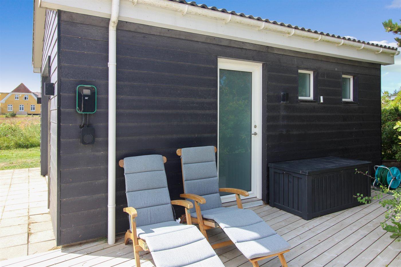 Ferieboligen er beliggende på en 2085 m² stor naturgrund. Der er 500 m til havet. Nærmeste forretning er beliggende i en afstand af 500 m. Der er en golfbane i en afstand af 2000 m. Til ferieboligen hører 100 m² terrasseareal. Ligeledes er der adgang til udestue. Gynge. Sandkasse. Rutchebane. Bålsted. Der er garage til rådighed. Der er installeret stik til opladning af elbil. Med 11 kW ladeeffekt. Parkering ved ferieboligen.