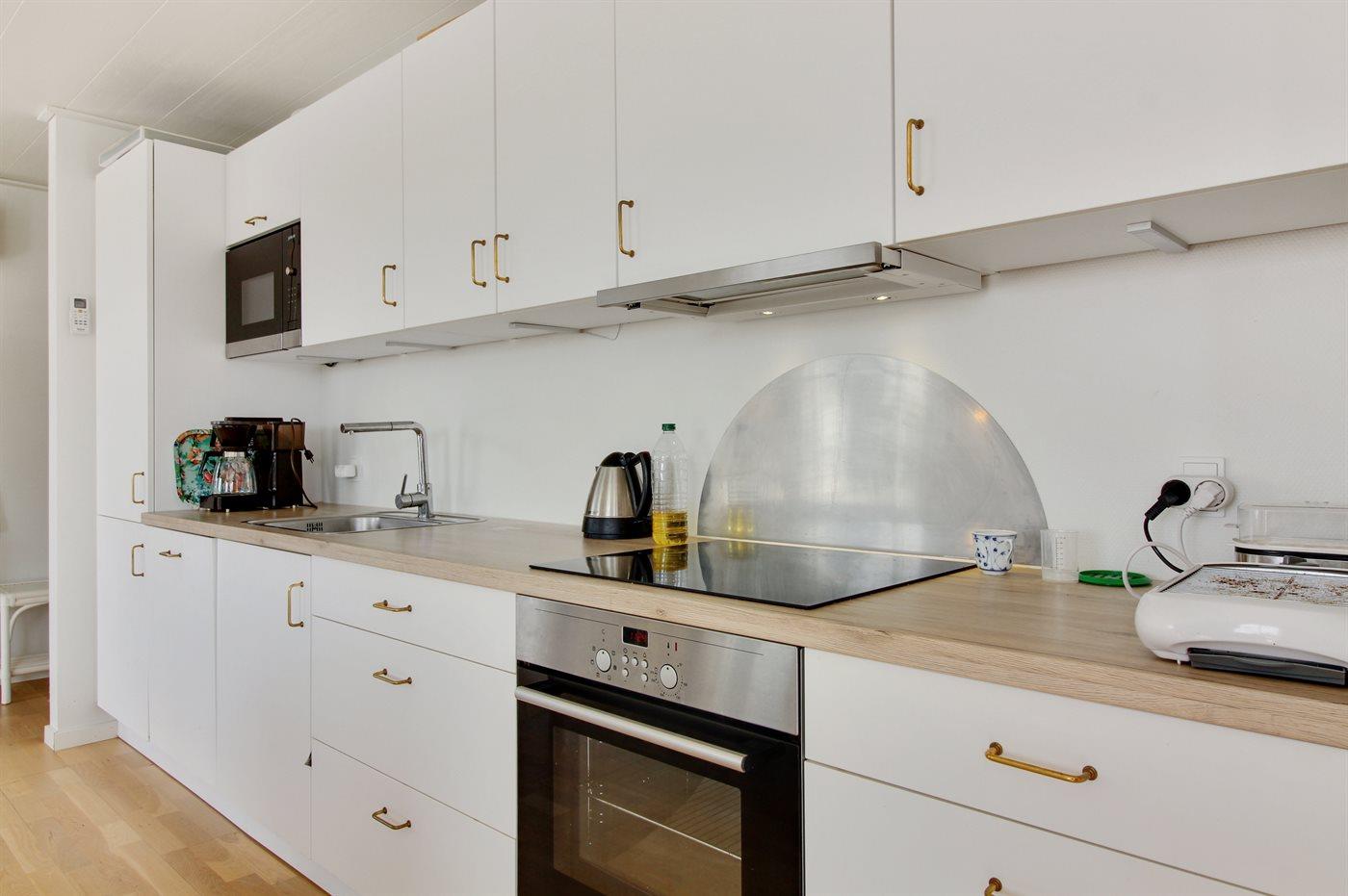 Køkkenet er udstyret med 1 køleskab. Der er 4 induktionskogeplader, varmluftovn, mikrobølgeovn samt opvaskemaskine.