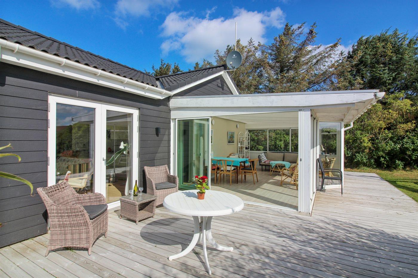 Rummeligt sommerhus i Løkken med stor terrasse, udestue og adgang til naturgrund tæt på havet.
