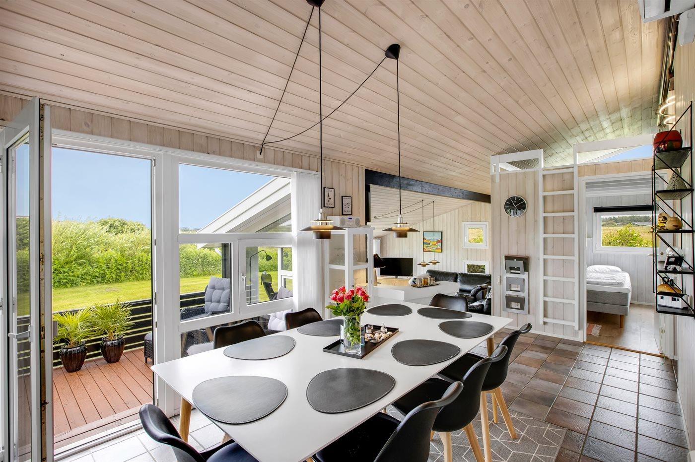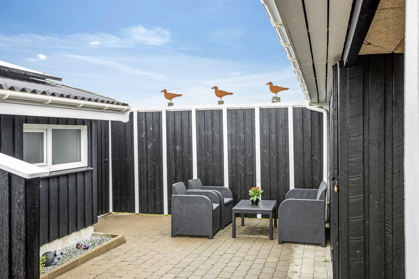 Flot og velholdt sommerhus med skønne terrasser beliggende tæt på Løkken by og den flotte sandstrand ved Vesterhavet. Huset ligger på en lukket vej ud til åbne naturarealer med en lille bæk løbende for enden af grunden, og indvendigt er huset indrettet lyst og indbydende med forsænket opholdsstue.