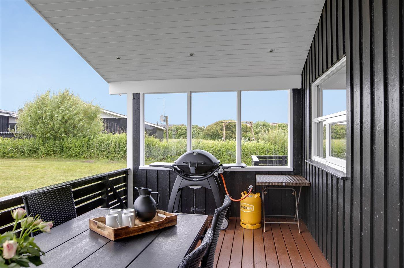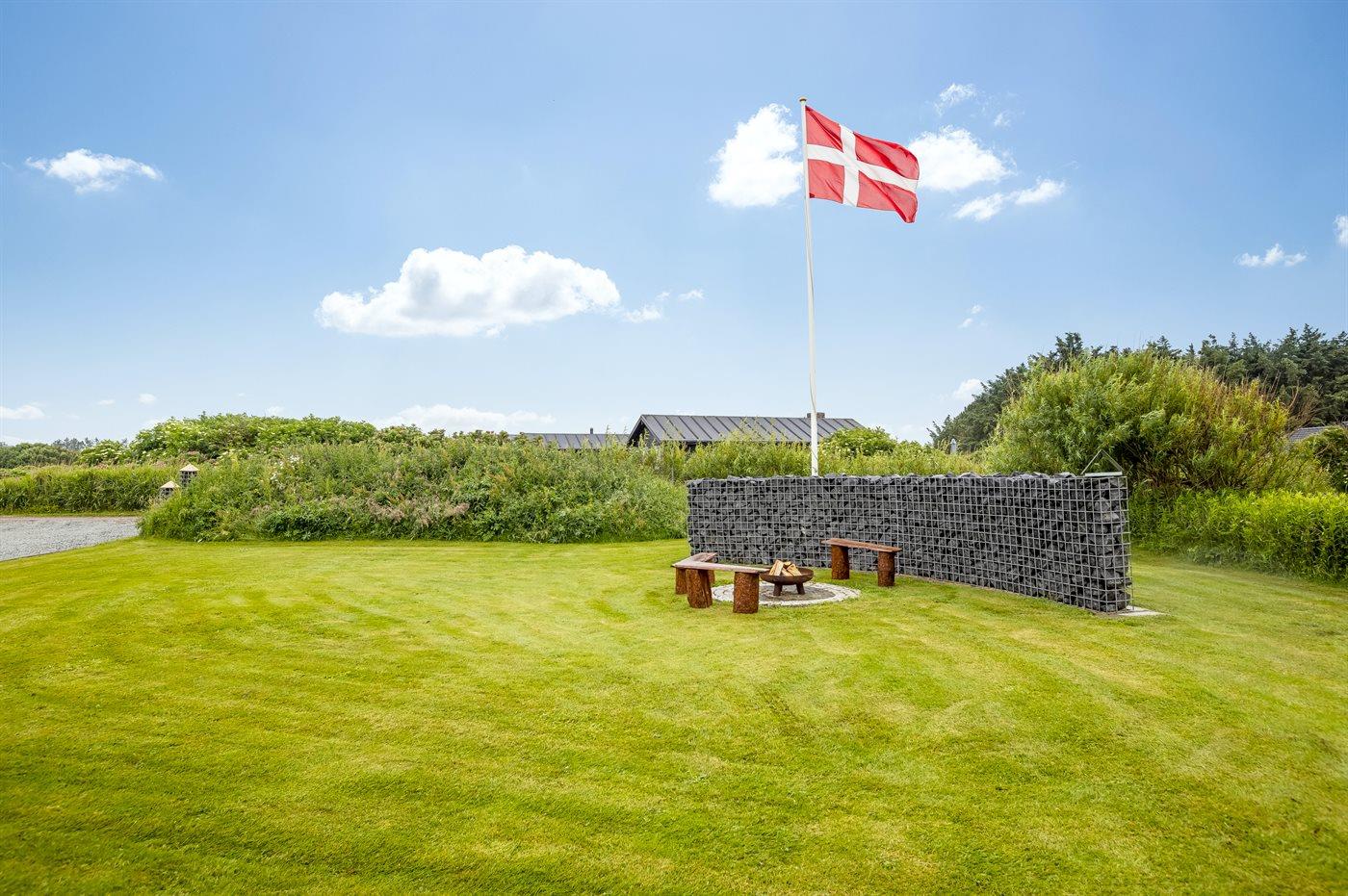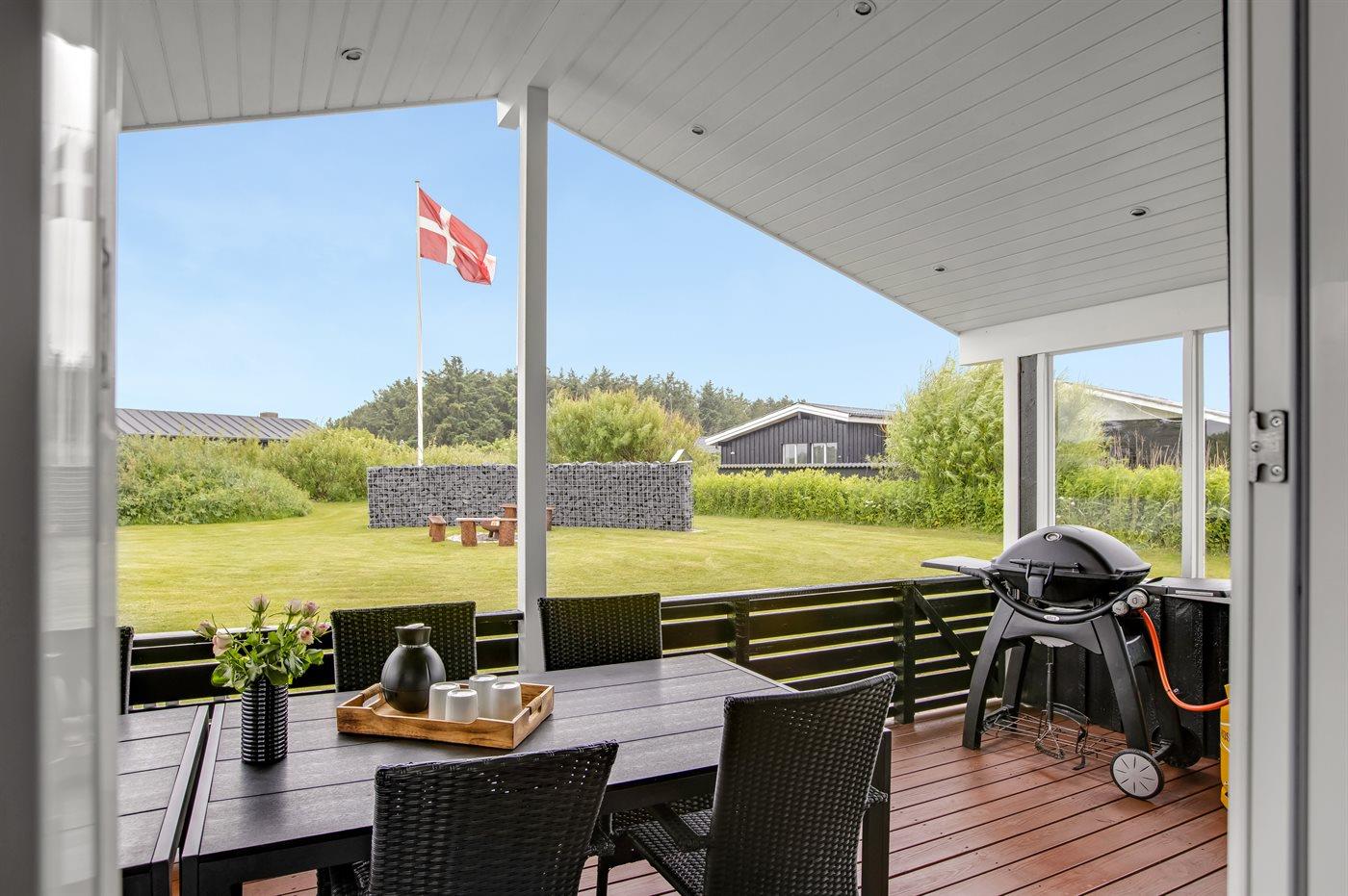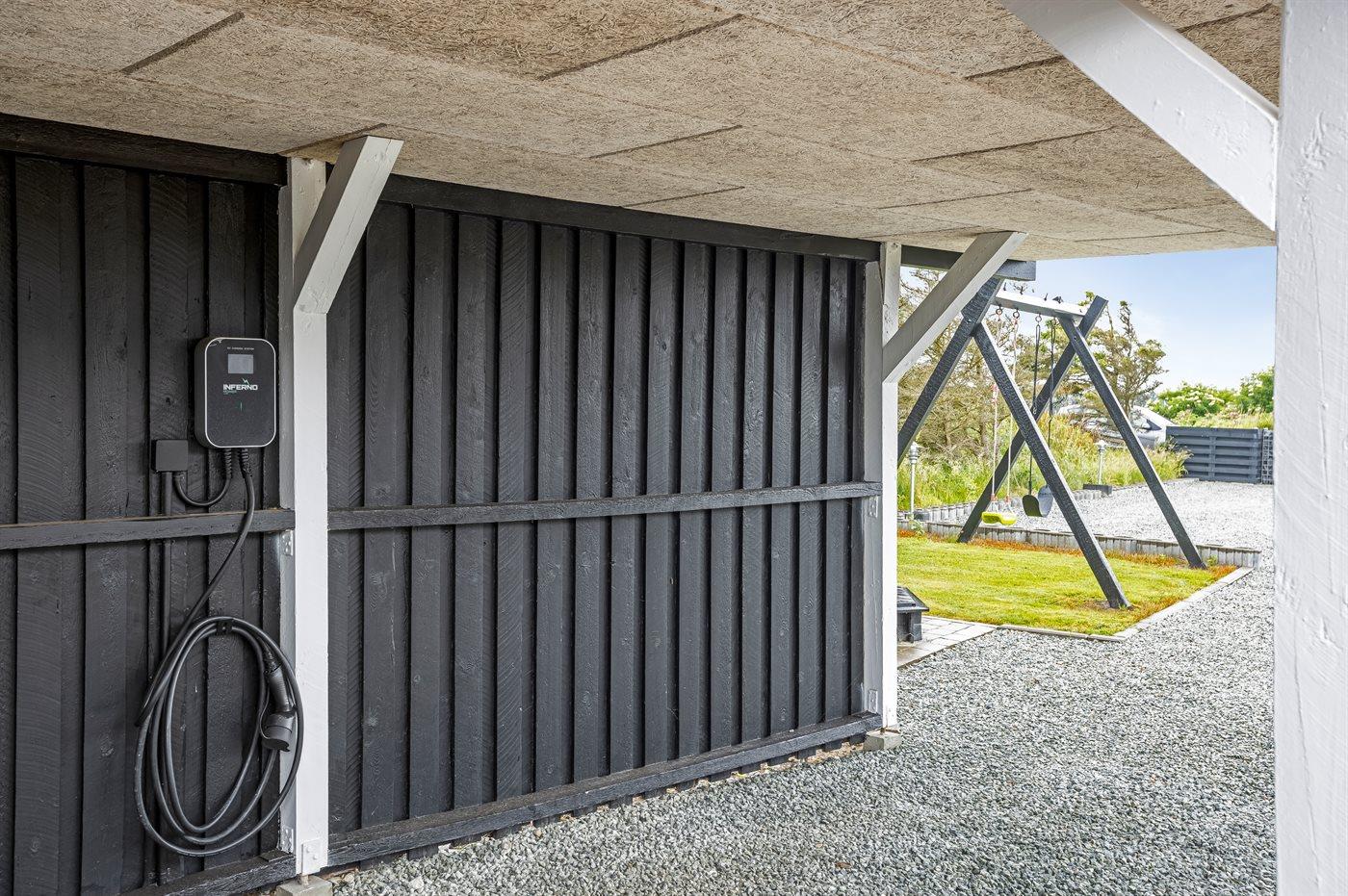 Ferieboligen er beliggende på en 1550 m² stor naturgrund. Der er 700 m til havet. Nærmeste forretning er beliggende i en afstand af 1800 m. Der er en golfbane i en afstand af 1900 m. Til ferieboligen hører 45 m² terrasseareal. Desuden er der 15 m² overdækket terrasse. Der er redskabsrum. Gynge. Sandkasse. Der er carport til rådighed. Der er installeret stik til opladning af elbil. Parkering ved ferieboligen.