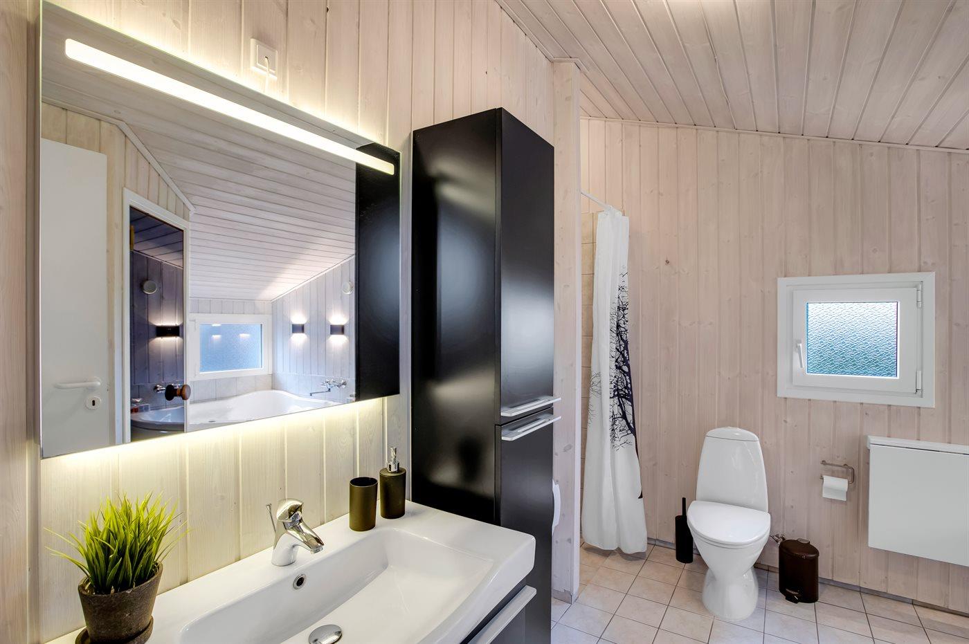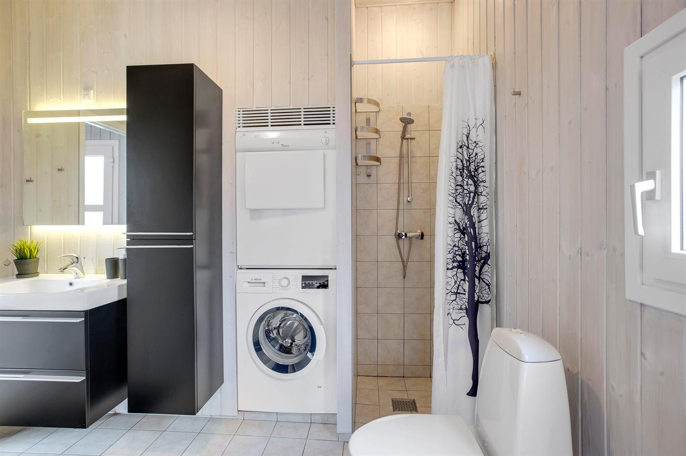 Der er 1 badeværelse med bruseniche og 2 toiletter, heraf 1 gæstetoilet. Der er gulvvarme på 1 badeværelse. Der er gulvvarme på gæstetoilettet. I saunaen er der mulighed for afslapning.