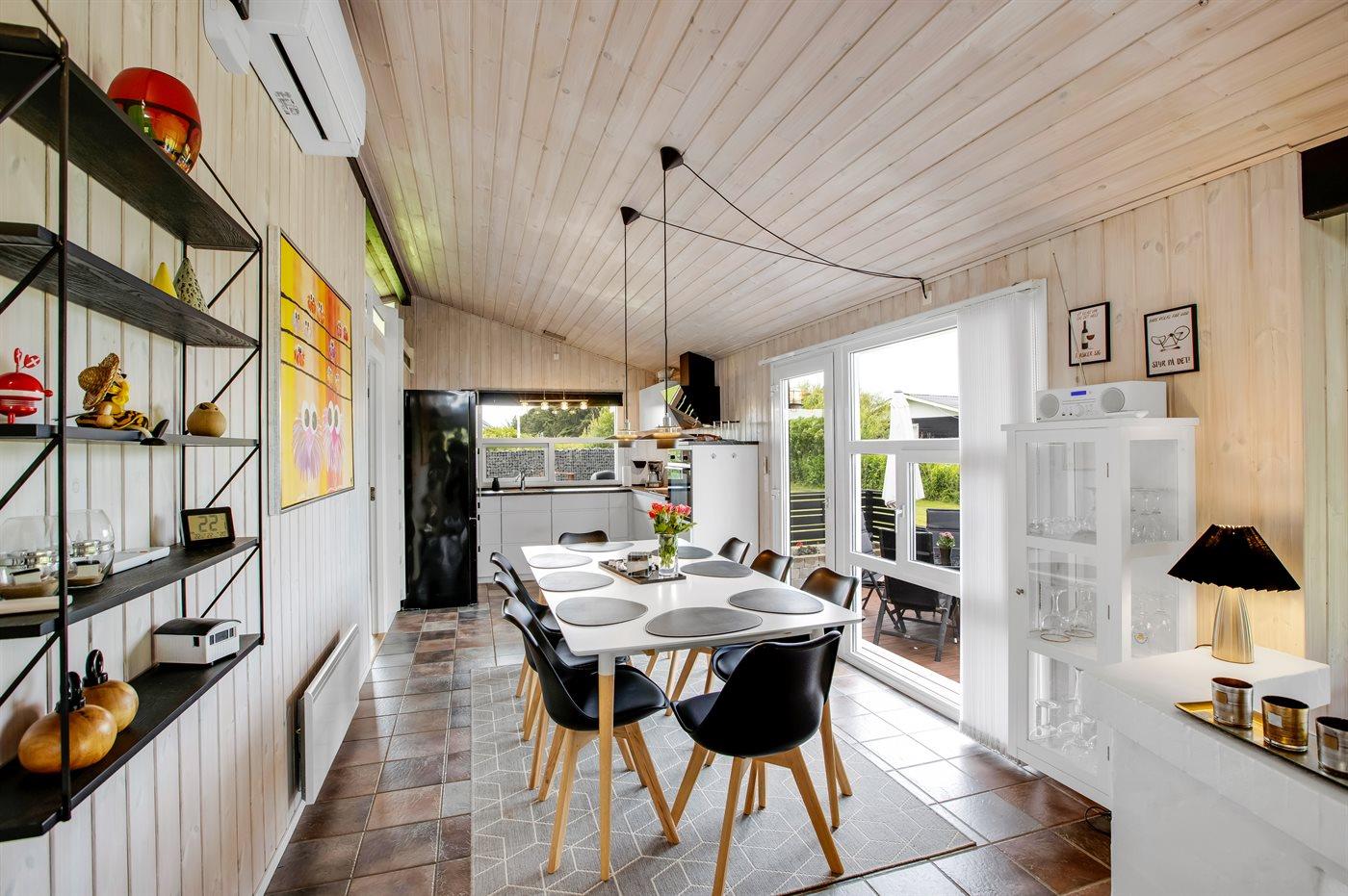 Sommerhuset egner sig til 6 personer. Ferieboligen er på 97 m² og er bygget i 1999. Det er tilladt at medbringe 1 husdyr. Ferieboligen er udstyret med energibesparende varmepumpe. Der er gulvvarme i alle klinkegulve. Ferieboligen har vaskemaskine. Tørretumbler. Frysekapacitet på 40 liter. Der er desuden brændeovn.