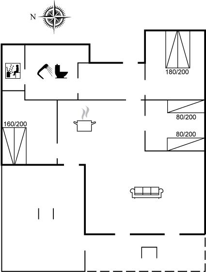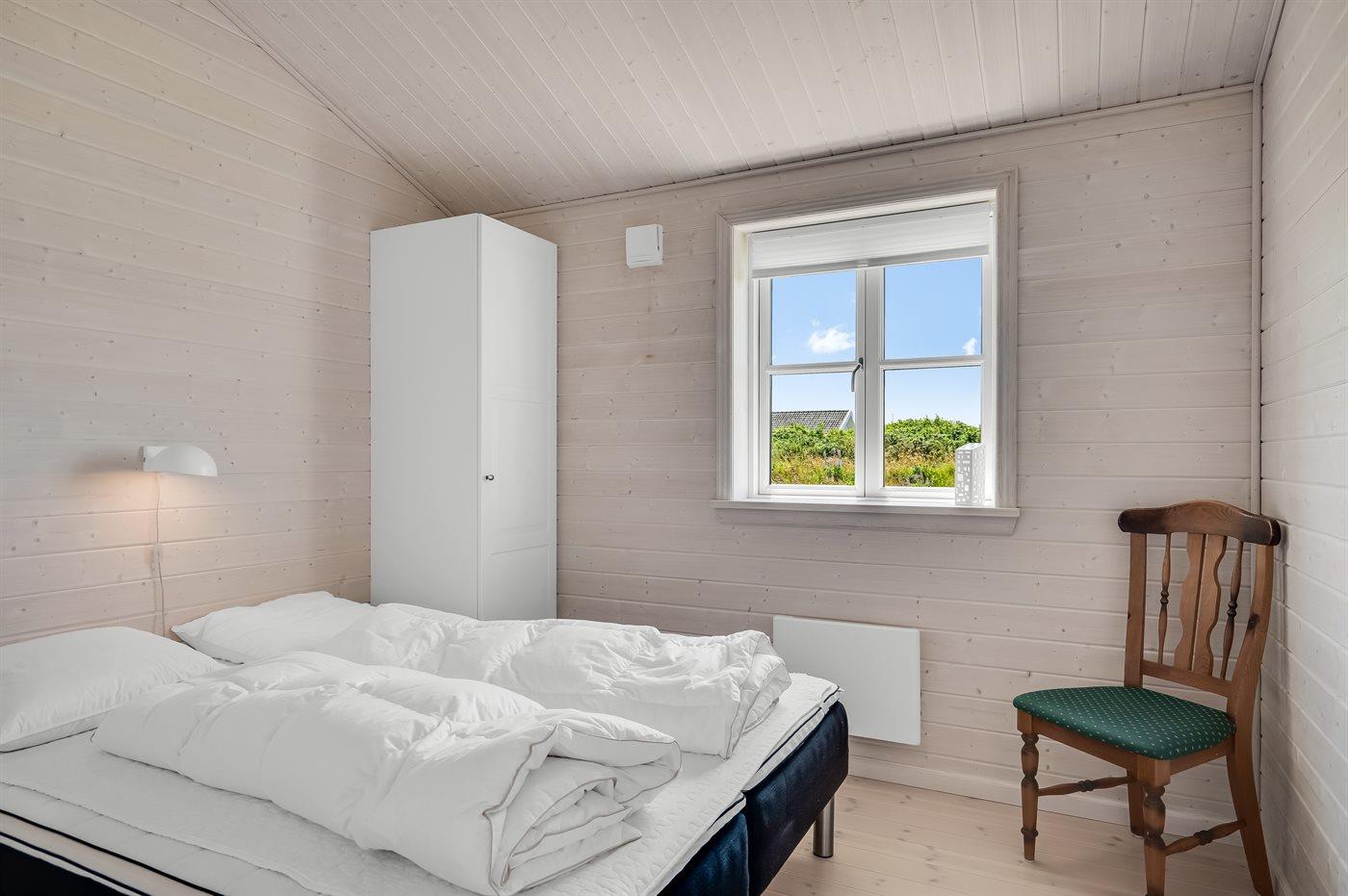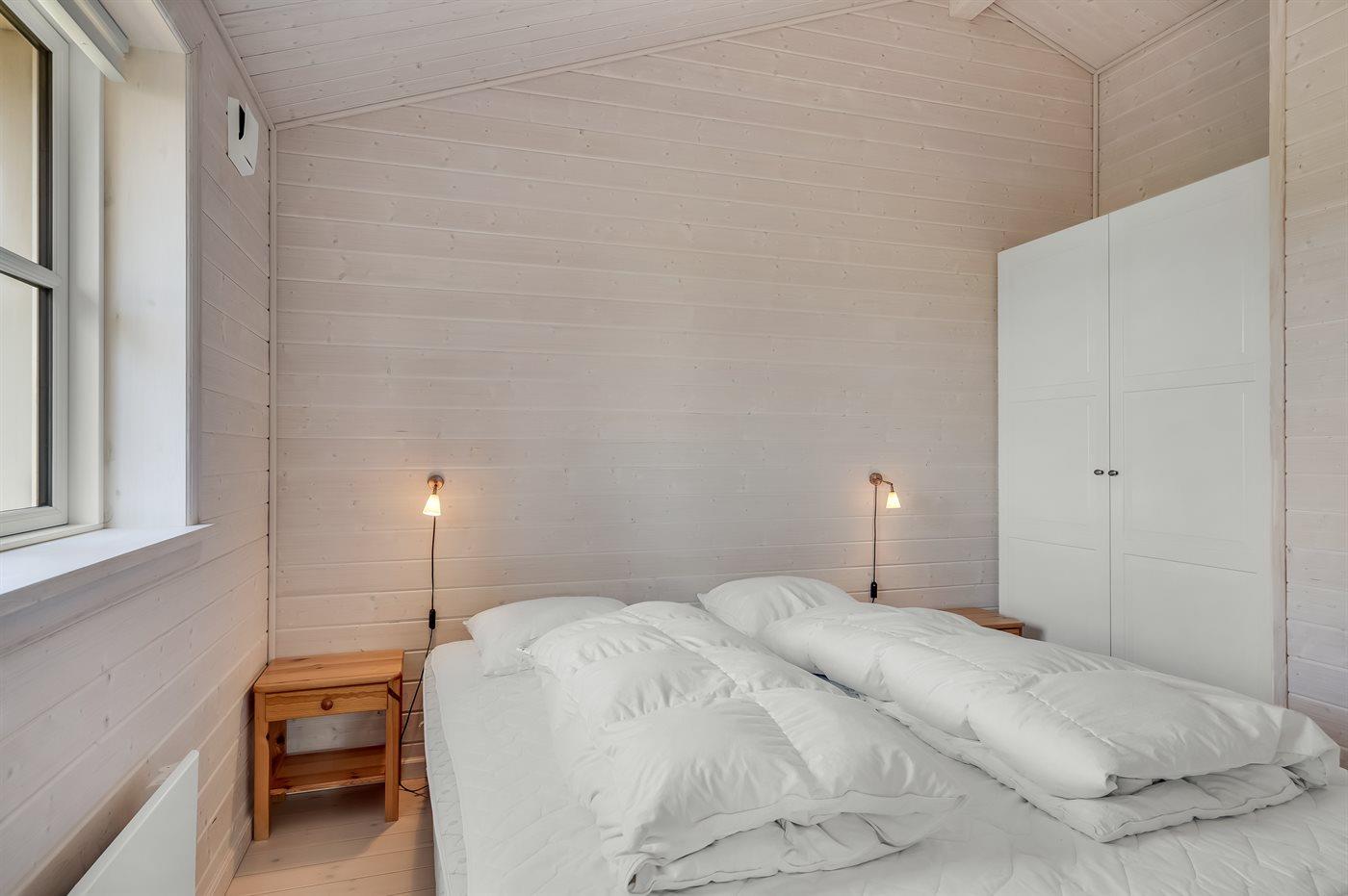 Der er i alt 3 soveværelser. Sovepladserne fordeler sig på: 4 sovepladser i dobbeltsenge. 2 sovepladser i enkeltsenge.
