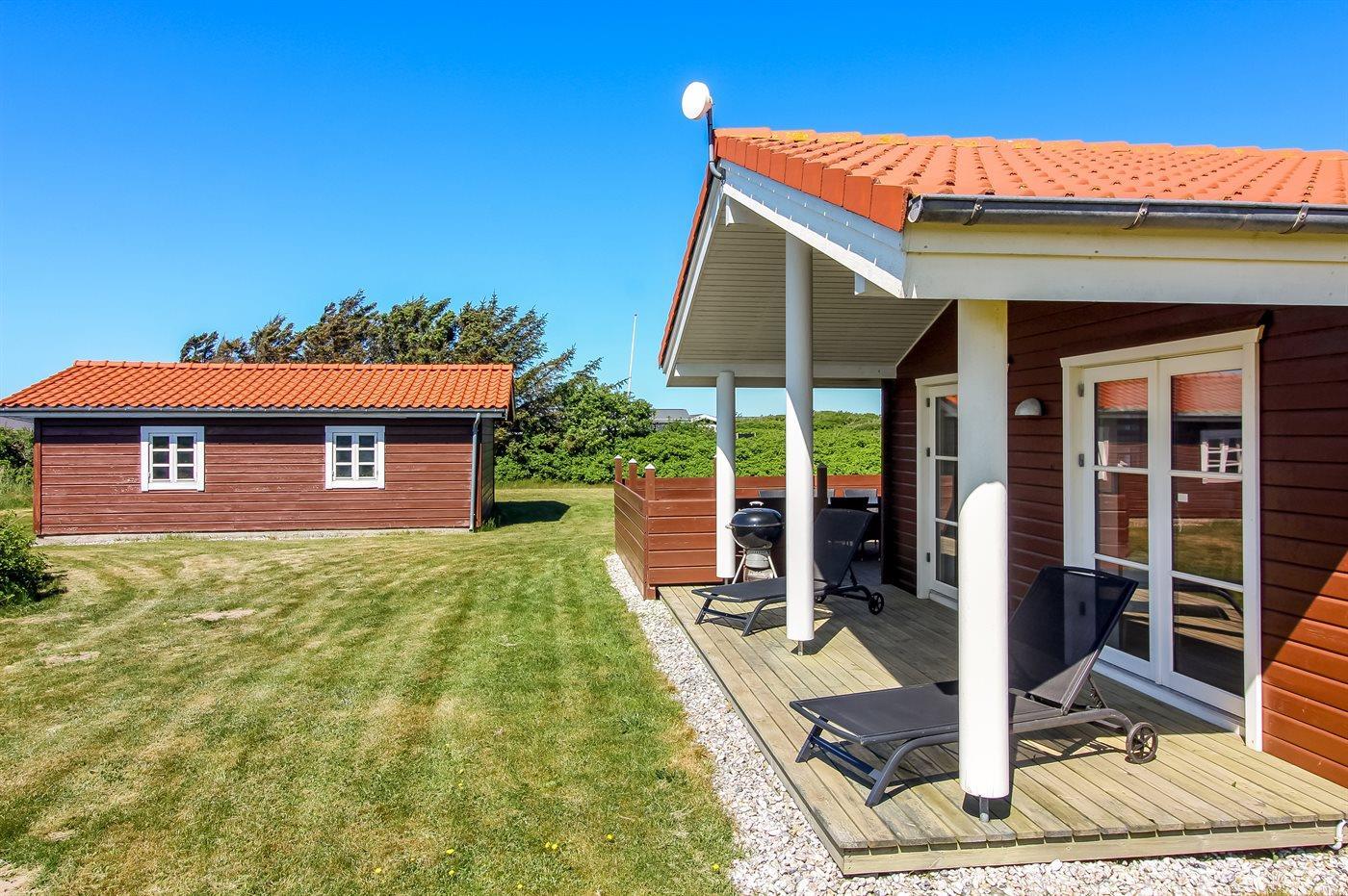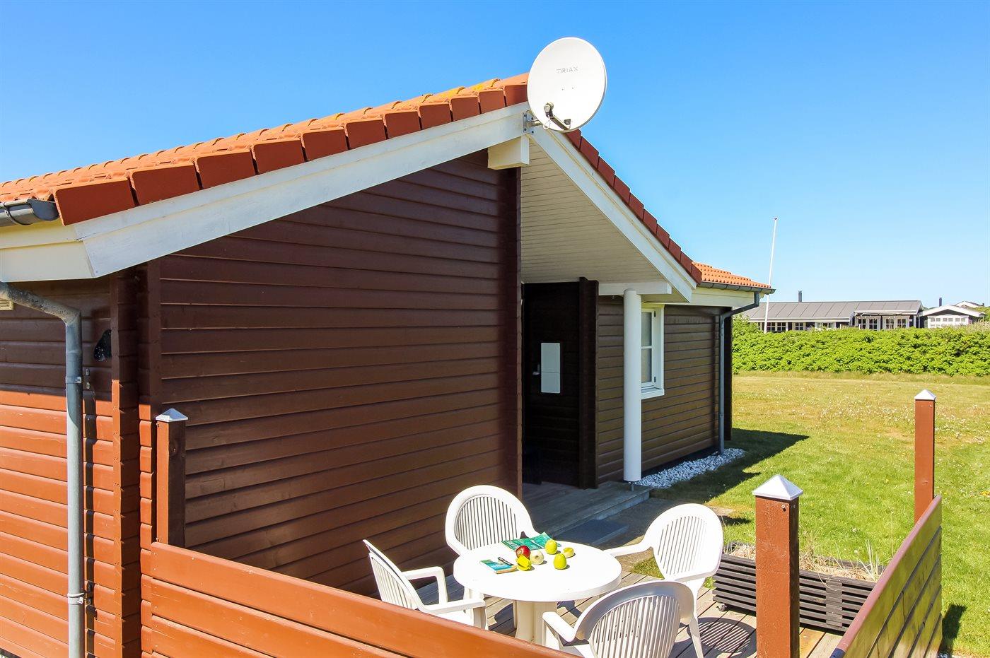 Ferieboligen er beliggende på en 2414 m² stor naturgrund. Der er 300 m til havet. Nærmeste forretning er beliggende i en afstand af 1500 m. Til ferieboligen hører 25 m² terrasseareal. Desuden er der 20 m² overdækket terrasse. Der er redskabsrum. Parkering ved ferieboligen.