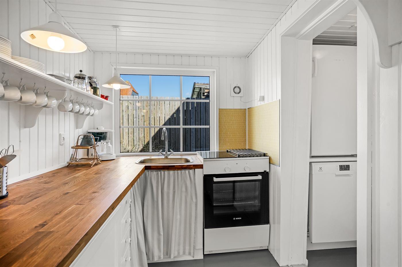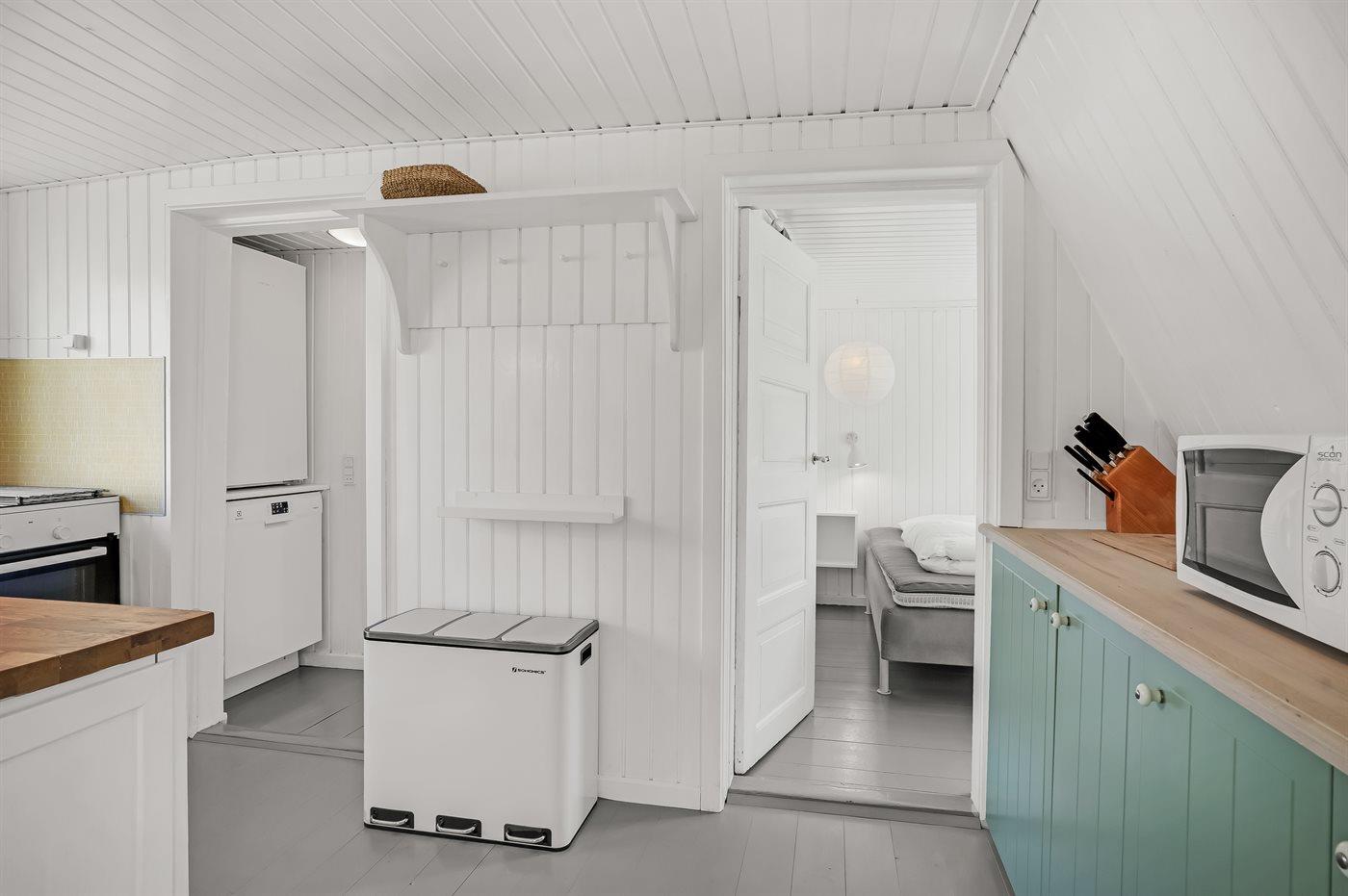 Køkkenet er udstyret med 1 køleskab. Der er 4 keramiske kogeplader, varmluftovn, mikrobølgeovn samt opvaskemaskine.