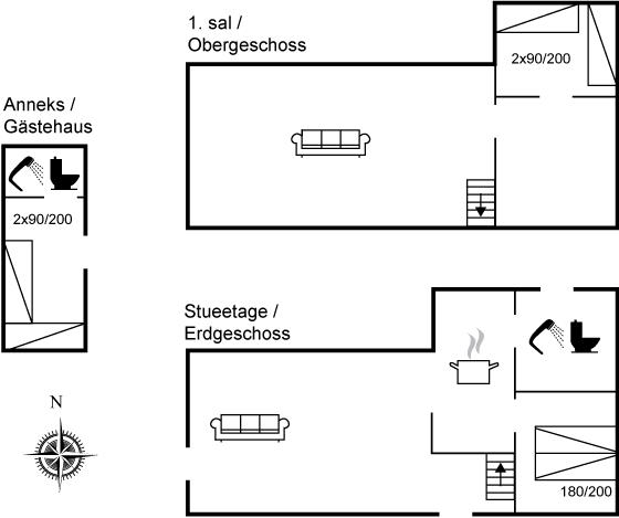Der er i alt 3 soveværelser. Sovepladserne fordeler sig på: 2 sovepladser i dobbeltseng. 4 sovepladser i enkeltsenge.- 2 af disse sovepladser befinder sig i et anneks.