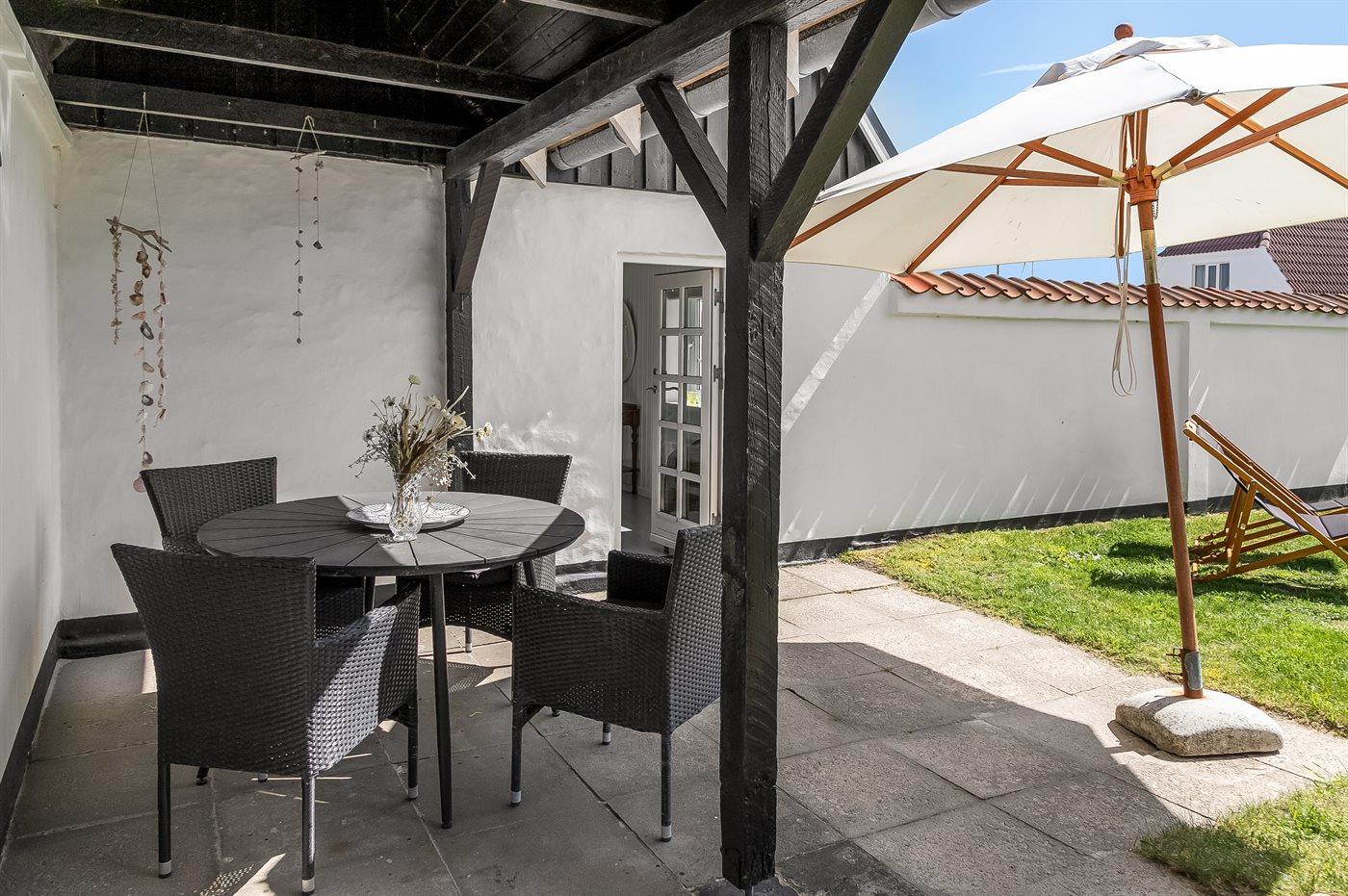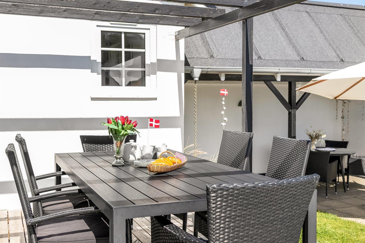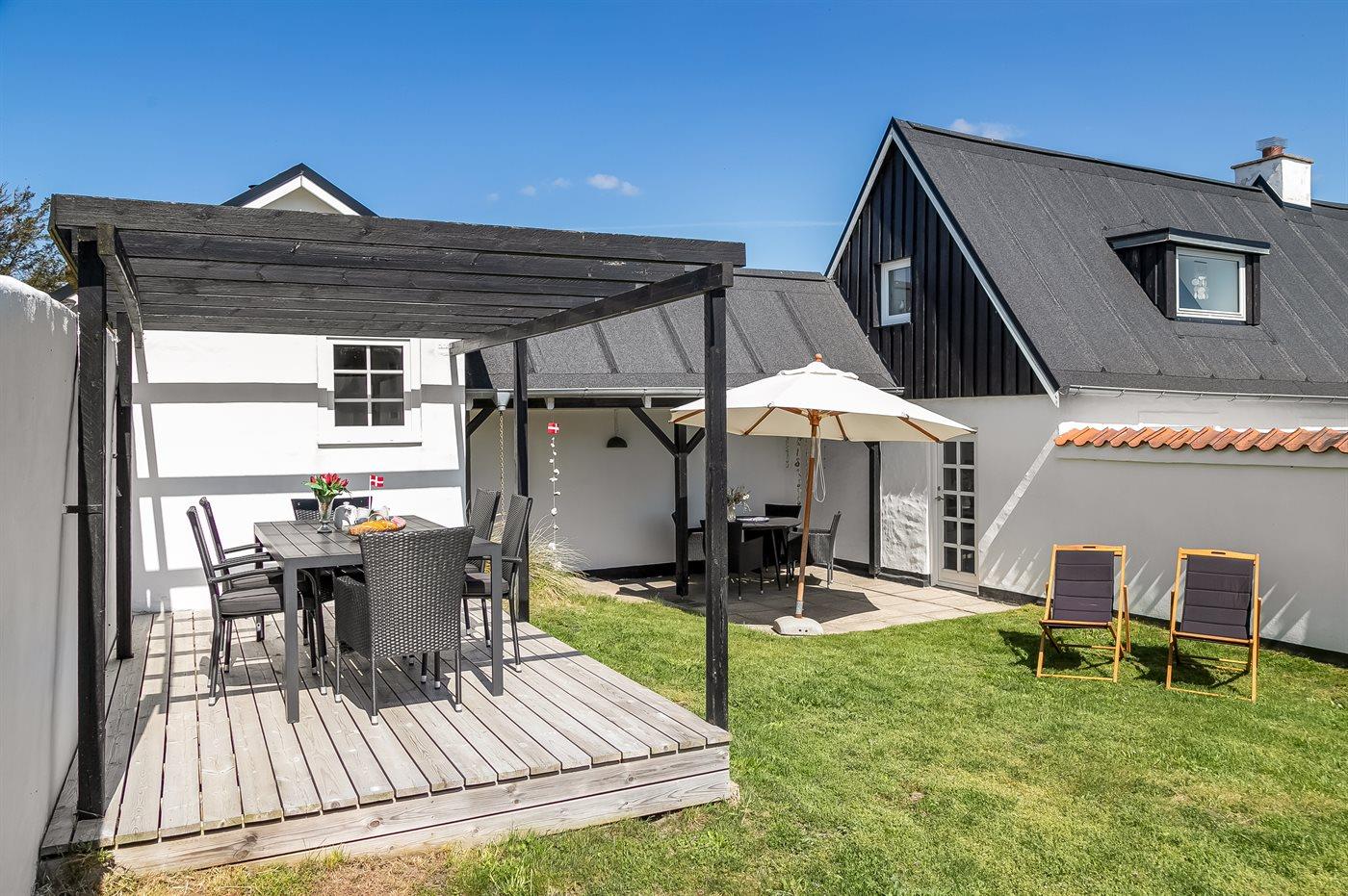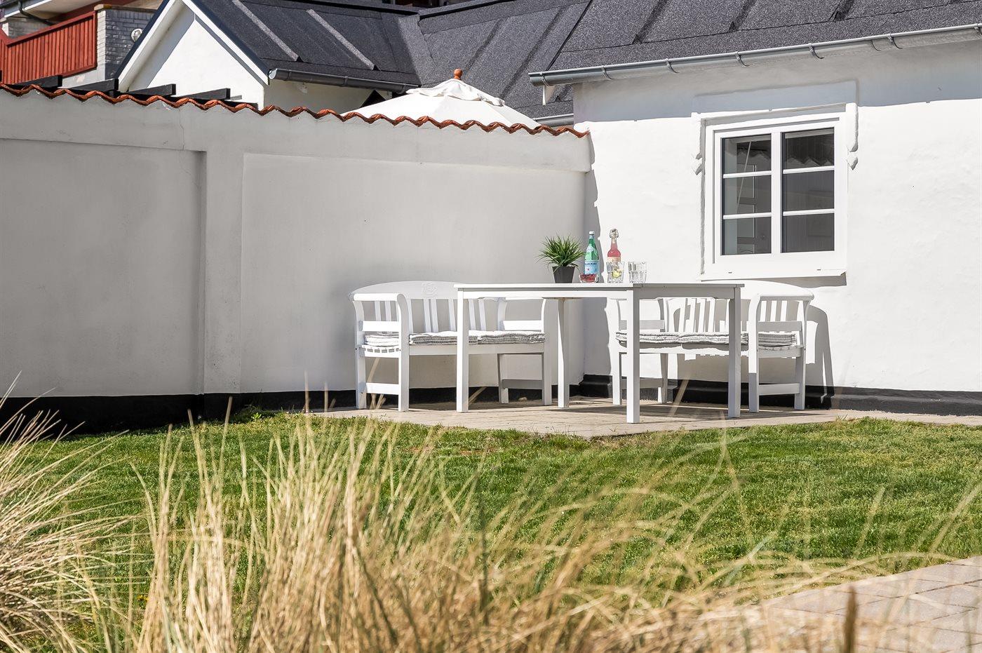 Ferieboligen er beliggende på en 485 m² stor naturgrund. Der er 150 m til havet. Nærmeste forretning er beliggende i en afstand af 250 m. Til ferieboligen hører 22 m² terrasseareal. Desuden er der 8 m² overdækket terrasse. Grill til rådighed. Parkering ved ferieboligen.