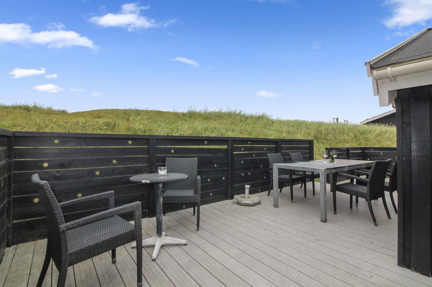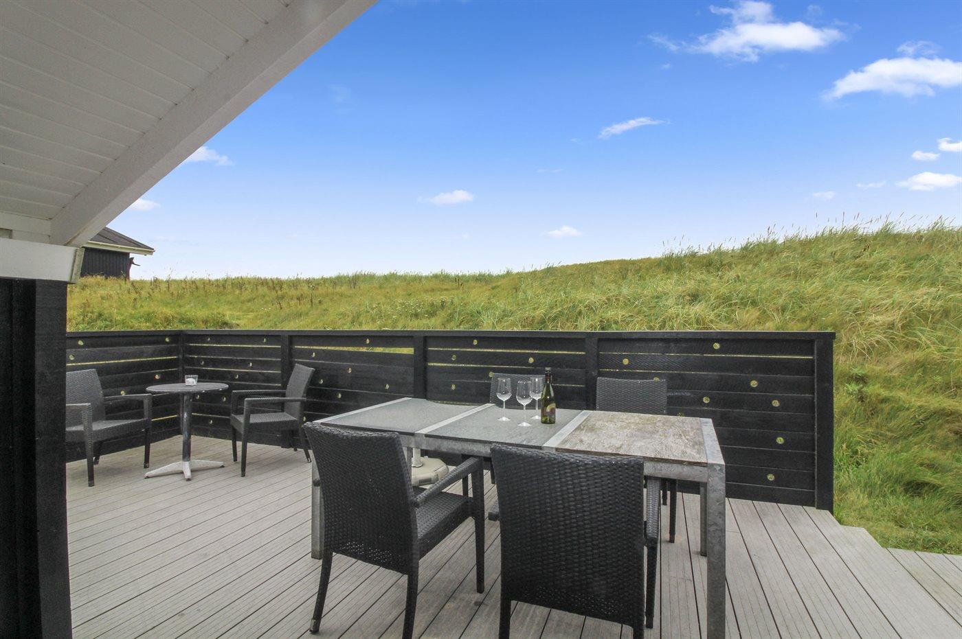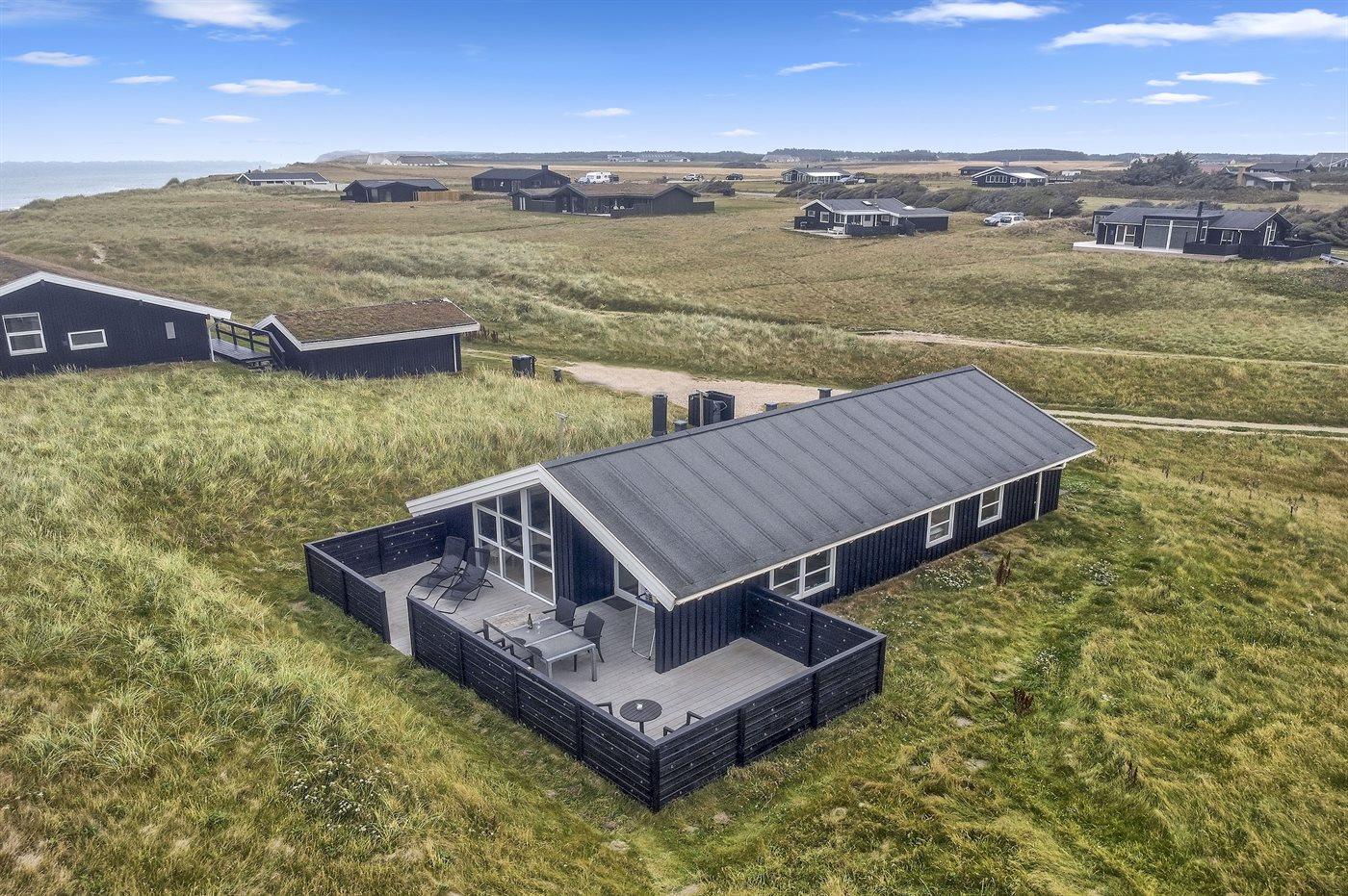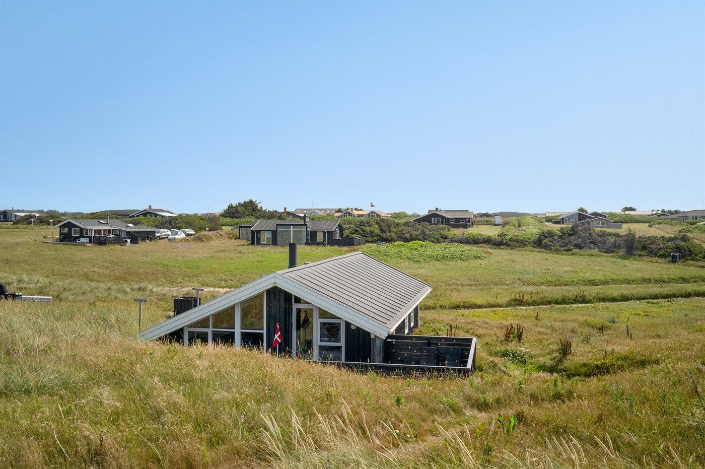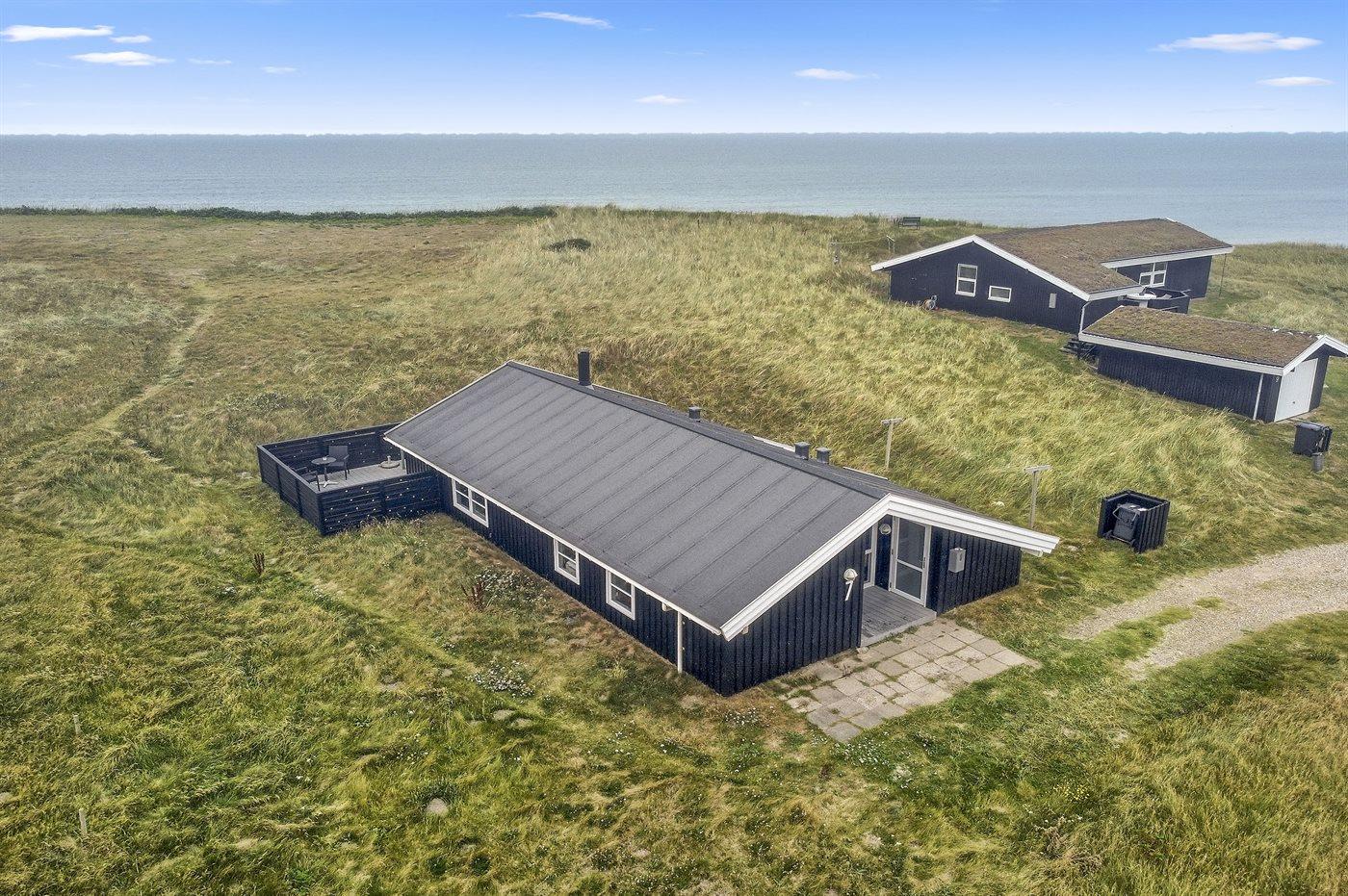 Velbeliggende sommerhus i første række til stranden og Vesterhavet med havudsigt fra grunden. Området er roligt og naturskønt og dog ligger Løkken bymidte med en kort køretur fra huset.