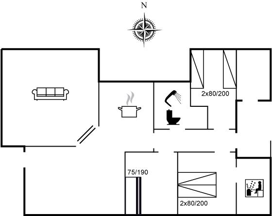 Der er 1 badeværelse med bruseniche og 1 toilet. I saunaen er der mulighed for afslapning.