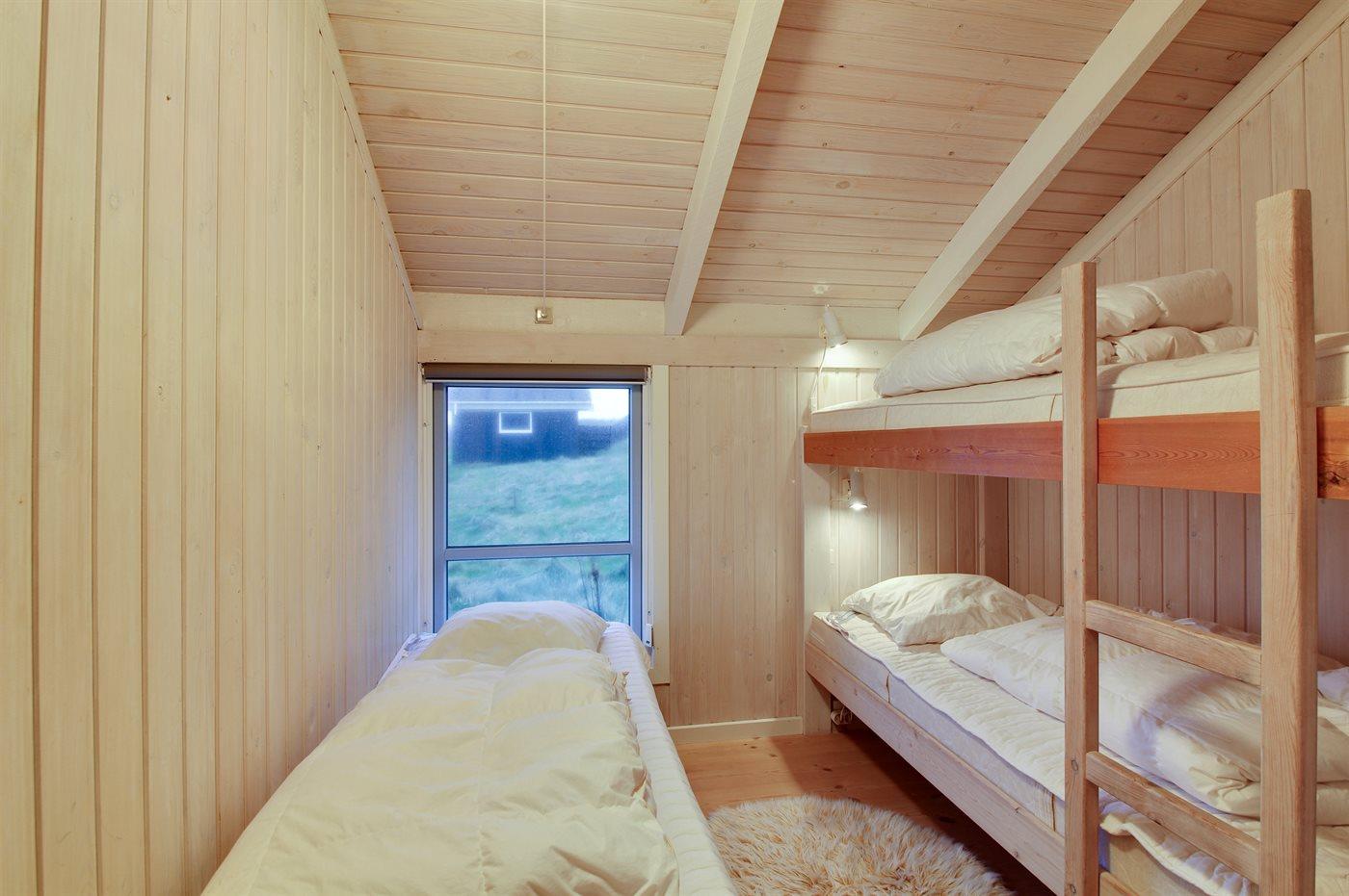 Der er i alt 3 soveværelser. Sovepladserne fordeler sig på: 2 sovepladser i dobbeltseng. 2 sovepladser i enkeltsenge. 2 sovepladser i køjeseng.