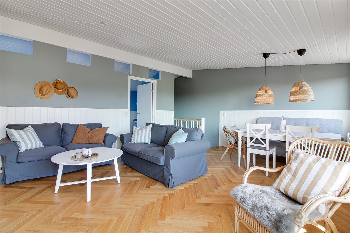 Ferielejligheden, som er bygget i 2 plan, er renoveret i 2023.