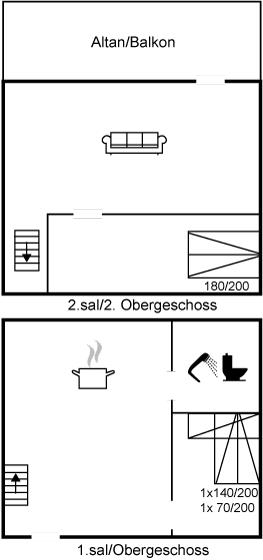 Der er i alt 2 soveværelser. Sovepladserne fordeler sig på: 2 sovepladser i dobbeltseng. 3 sovepladser i køjesenge.