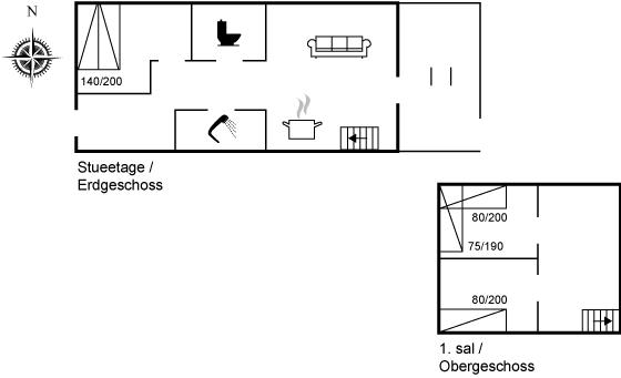 Der er i alt 3 soveværelser. Sovepladserne fordeler sig på: 2 sovepladser i dobbeltseng. 2 sovepladser i enkeltsenge.1 soveplads i køjeseng.