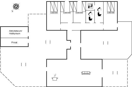 Der er i alt 4 soveværelser. Sovepladserne fordeler sig på: 8 sovepladser i enkeltsenge. Derudover er der 1 stk. barneseng.