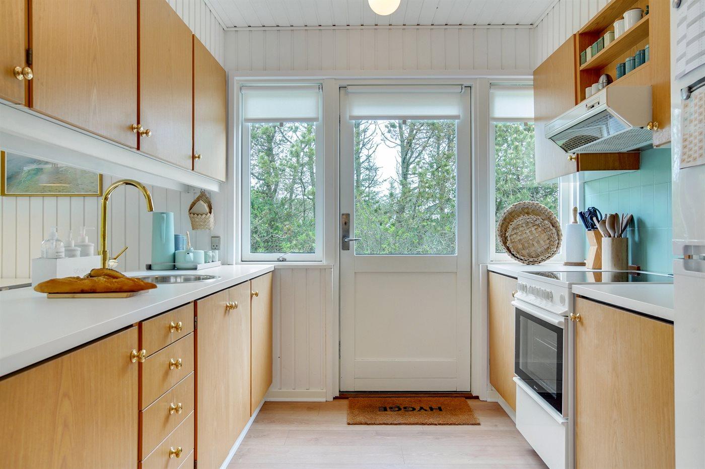 Køkkenet er udstyret med 1 køleskab. Der er 4 keramiske kogeplader, varmluftovn, mikrobølgeovn.