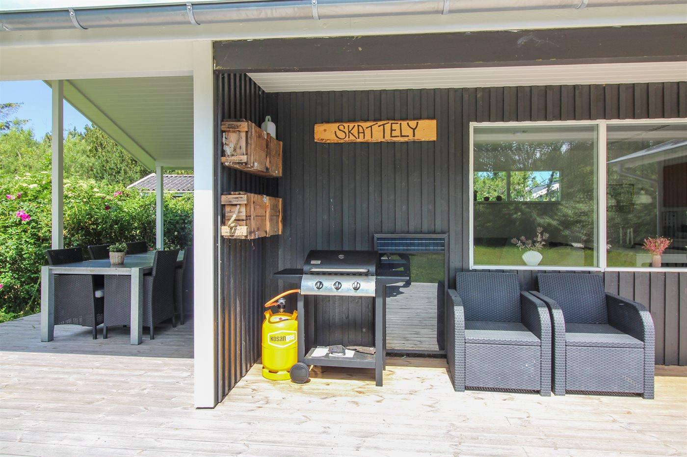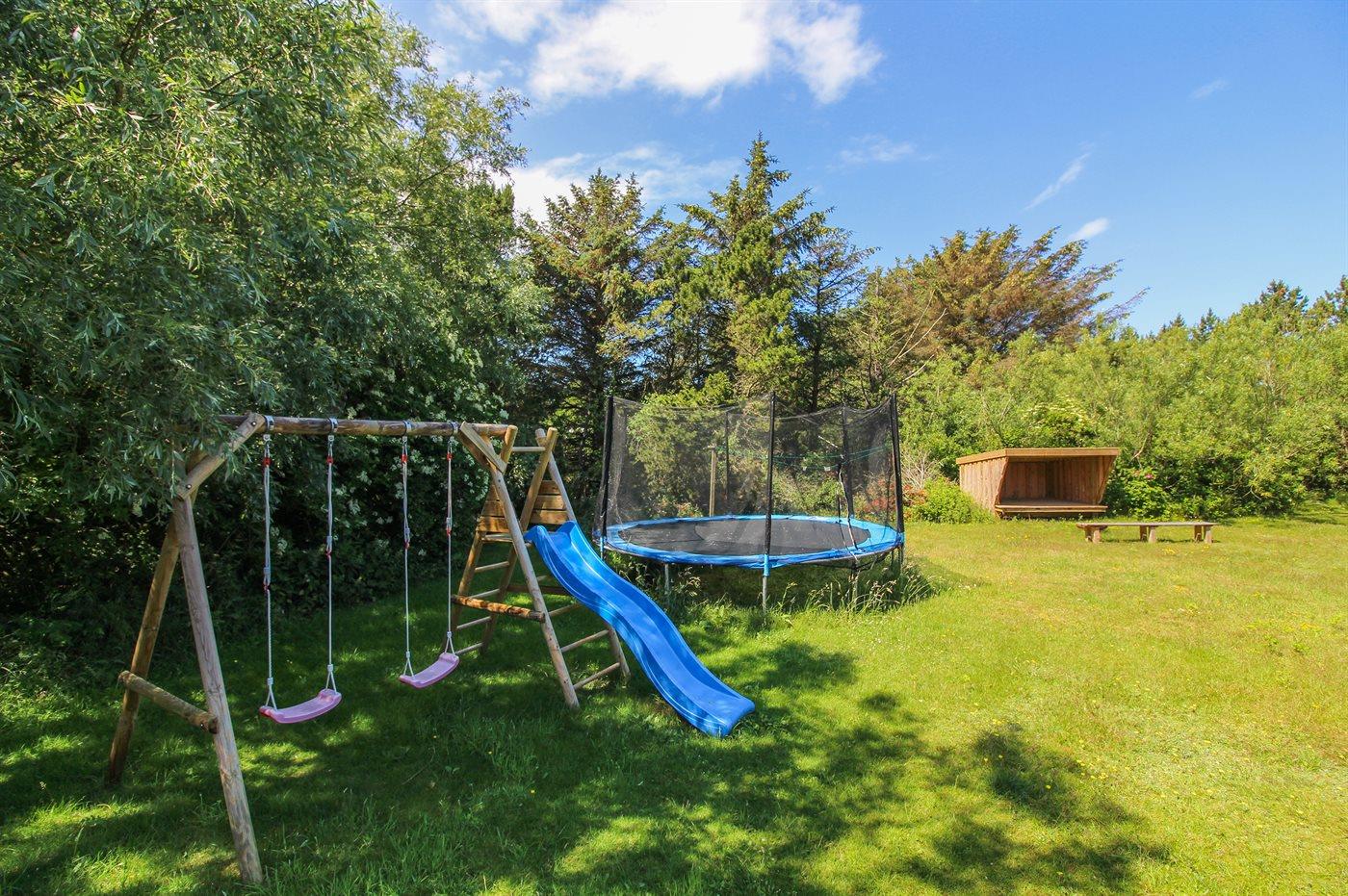 Ferieboligen er beliggende på en 2500 m² stor naturgrund. Der er 650 m til havet. Nærmeste forretning er beliggende i en afstand af 2300 m. Til ferieboligen hører 50 m² terrasseareal. Desuden er der 10 m² overdækket terrasse. Gynge. Trampolin. Rutchebane. Parkering ved ferieboligen.