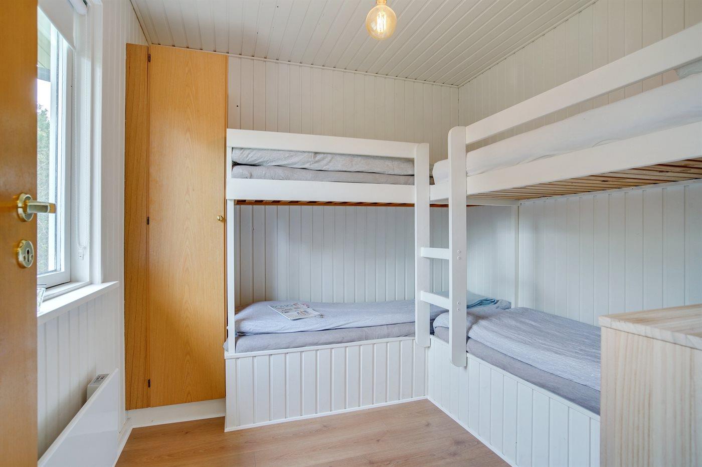 Der er i alt 3 soveværelser. Sovepladserne fordeler sig på: 2 sovepladser i dobbeltseng. 2 sovepladser i enkeltsenge. 4 sovepladser i køjesenge. Derudover er der 1 stk. barneseng.