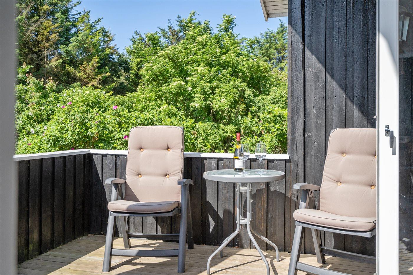 Ferieboligen er beliggende på en 1983 m² stor naturgrund. Der er 922 m til havet. Nærmeste forretning er beliggende i en afstand af 1600 m. Til ferieboligen hører 40 m² terrasseareal. Desuden er der 10 m² overdækket terrasse. Der er redskabsrum. Gynge. Rutchebane. Fodboldmål. Gasgrill står til rådighed. Parkering ved ferieboligen.
