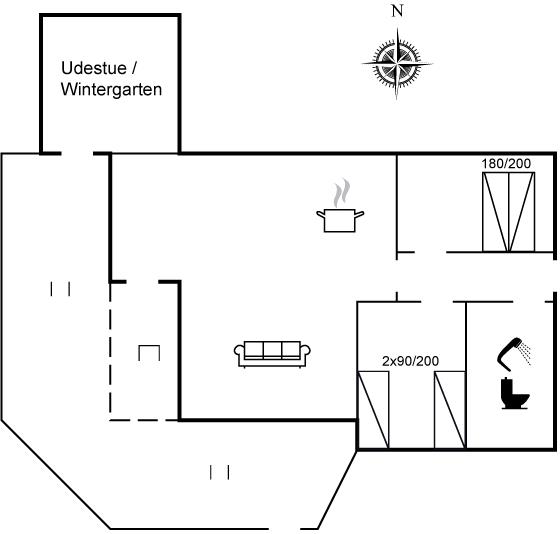 Der er i alt 2 soveværelser. Sovepladserne fordeler sig på: 2 sovepladser i dobbeltseng. 2 sovepladser i enkeltsenge.