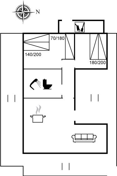 Der er i alt 2 soveværelser. Sovepladserne fordeler sig på: 4 sovepladser i dobbeltsenge. 1 soveplads i enkeltseng.