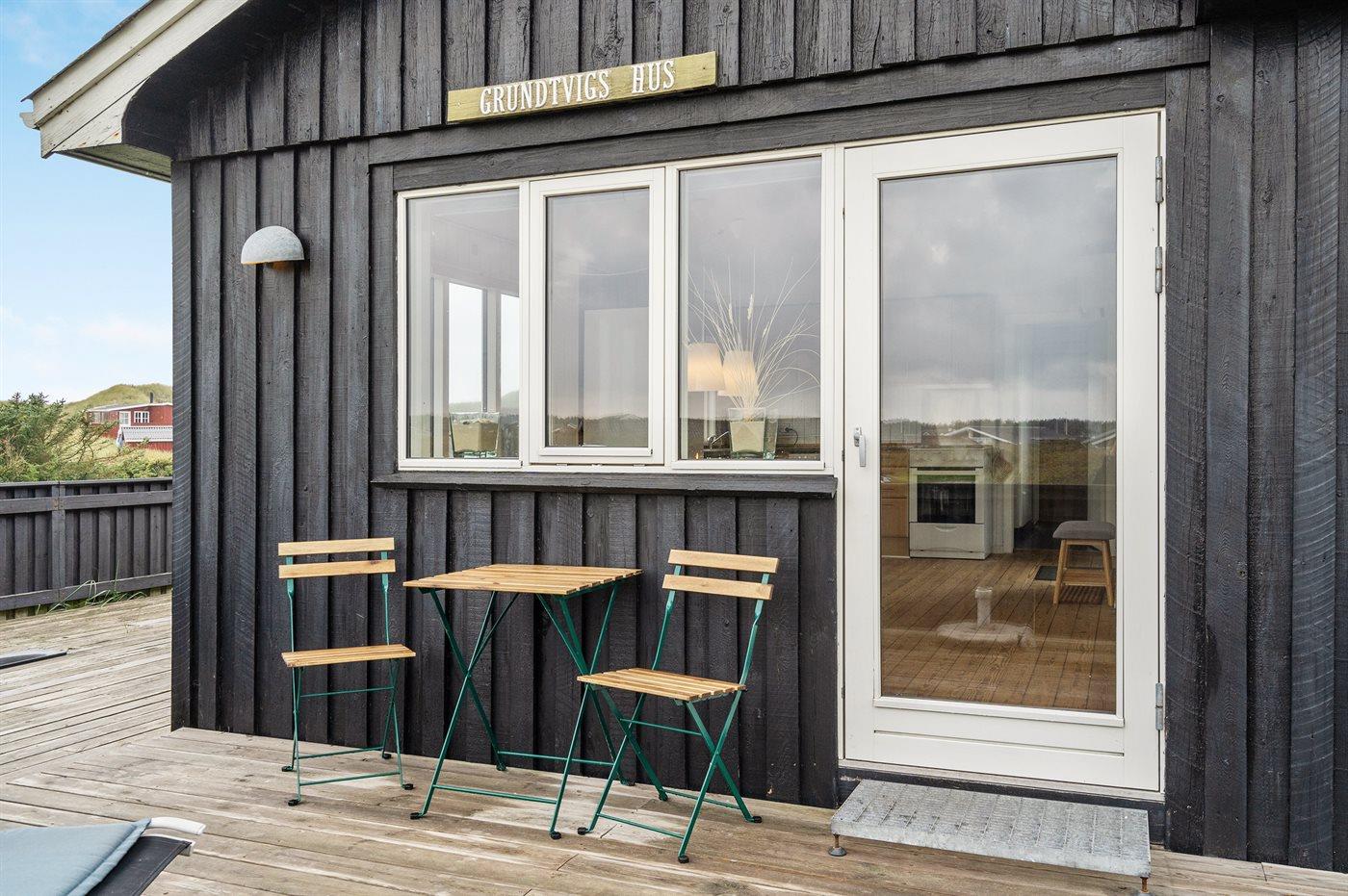 I et af de ældste sommerhusområder syd for Løkken ligger Grundtvigs hus, fra 1937. Her mærkes historiens vingesus så snart du drejer ned ad Emil Nielsens Vej. Feriestemningen sniger sig ind jo tættere du kommer huset, der ligger på en åben naturgrund med klitbevoksning. Lige bag klitten ligger stranden, og på den vestvendte terrasse kan du nyde solnedgangen på nærmeste hold. Få det hele med fra det hævede terrassestykke, hvor du kan se havet titte frem mellem klitterne. Morgenkaffen nydes på den østvendte morgenterrasse, som ligger i læ for vestenvinden, og har udsigt over områdets marker.