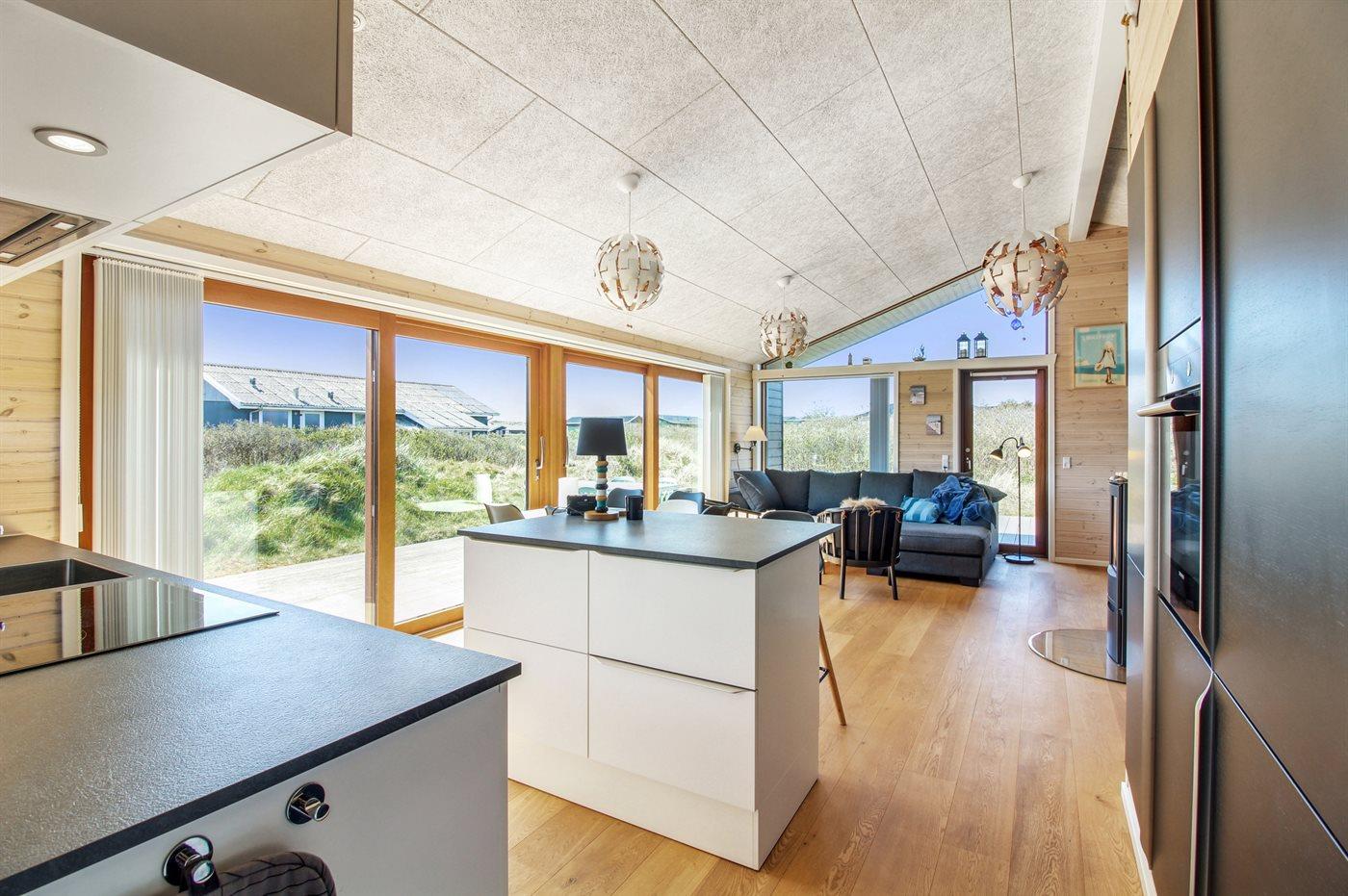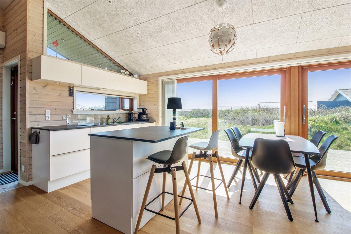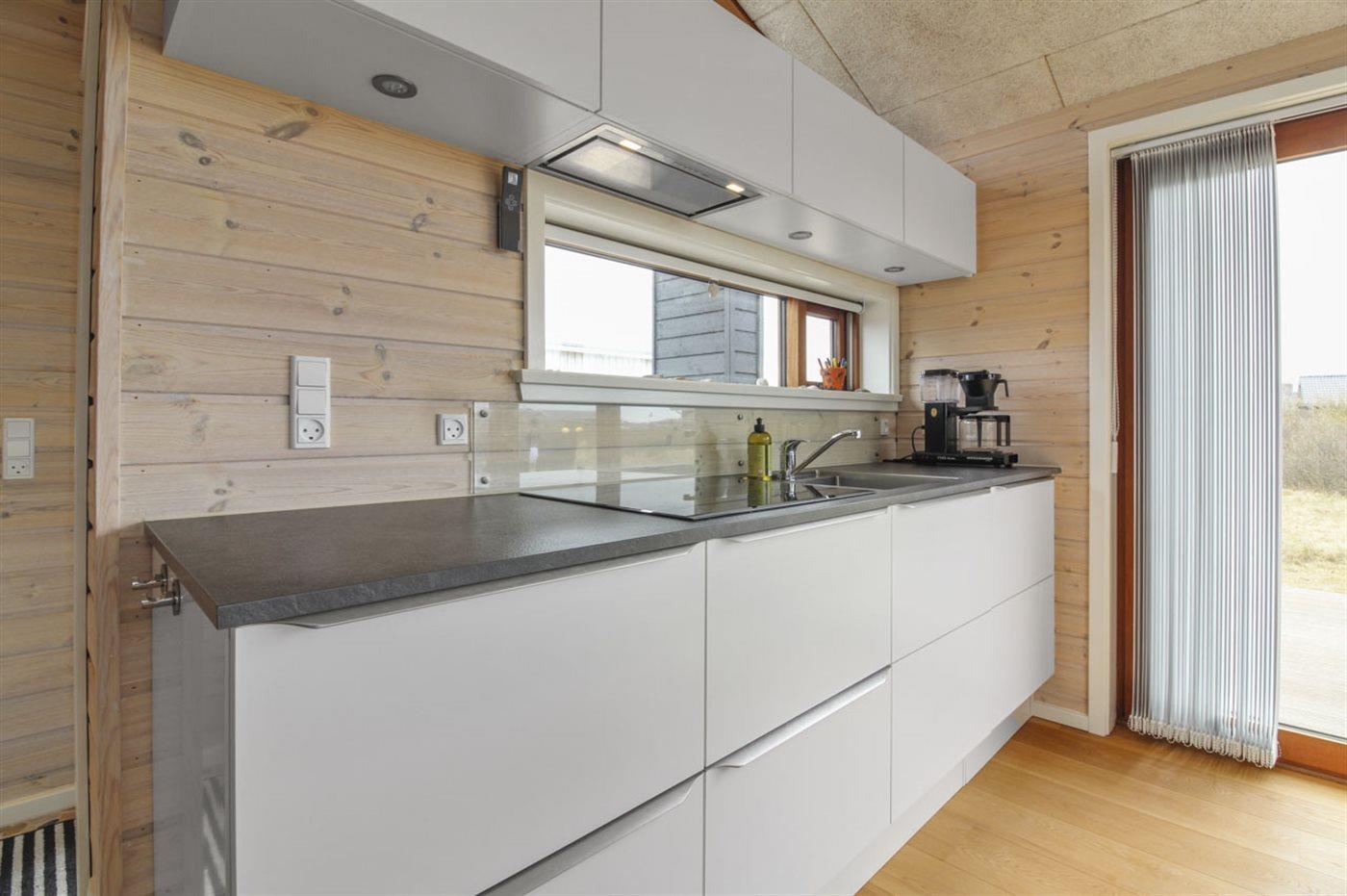 Køkkenet er udstyret med 1 køleskab. Der er 4 induktionskogeplader, varmluftovn, mikrobølgeovn samt opvaskemaskine.