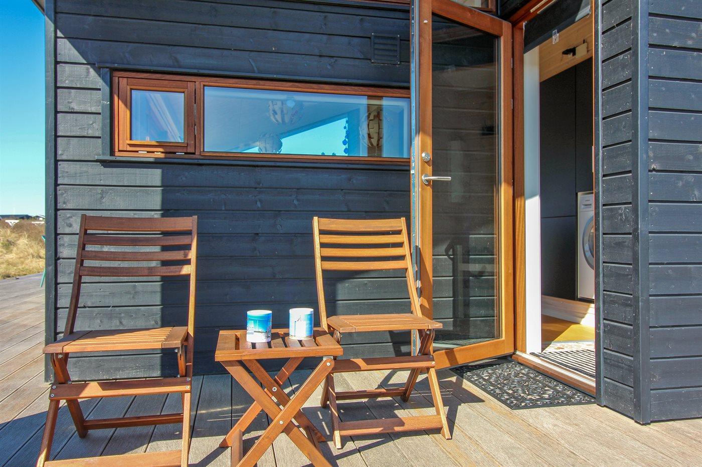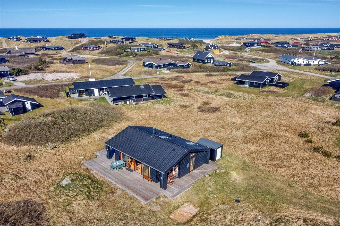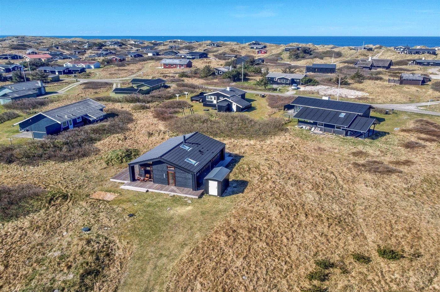 Ferieboligen er beliggende på en 1400 m² stor naturgrund. Der er 250 m til havet. Nærmeste forretning er beliggende i en afstand af 2000 m. Til ferieboligen hører åbent terrasseareal. Desuden er der overdækket terrasse. Parkering ved ferieboligen.