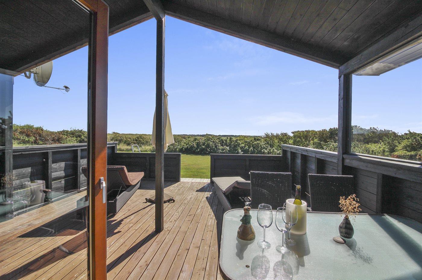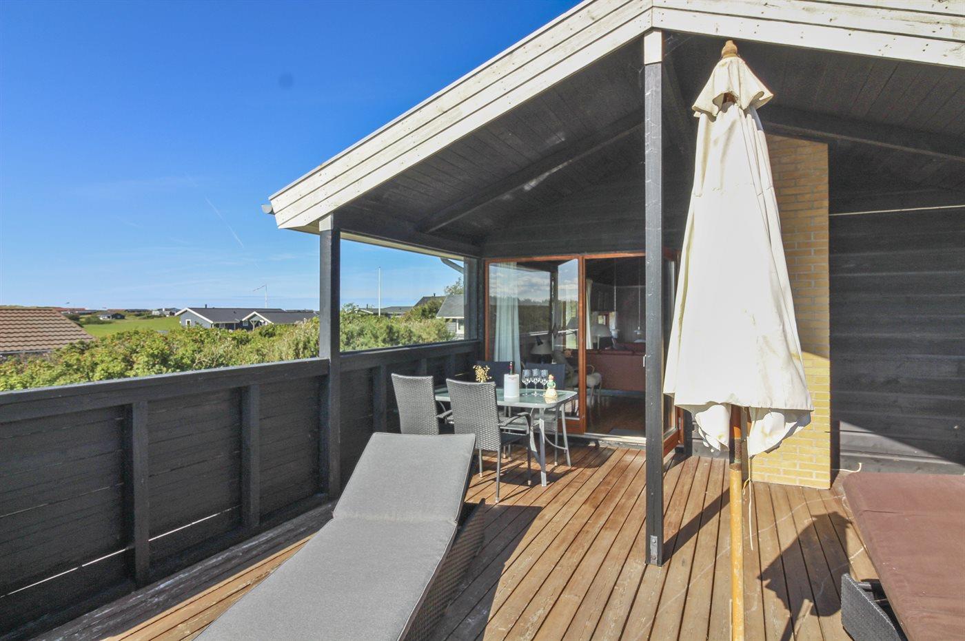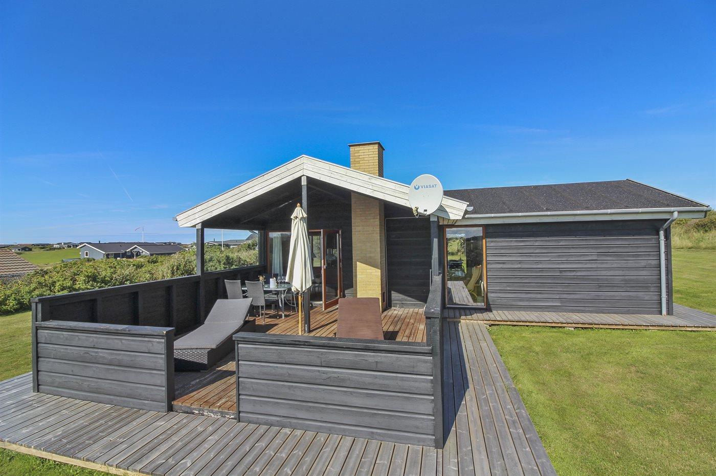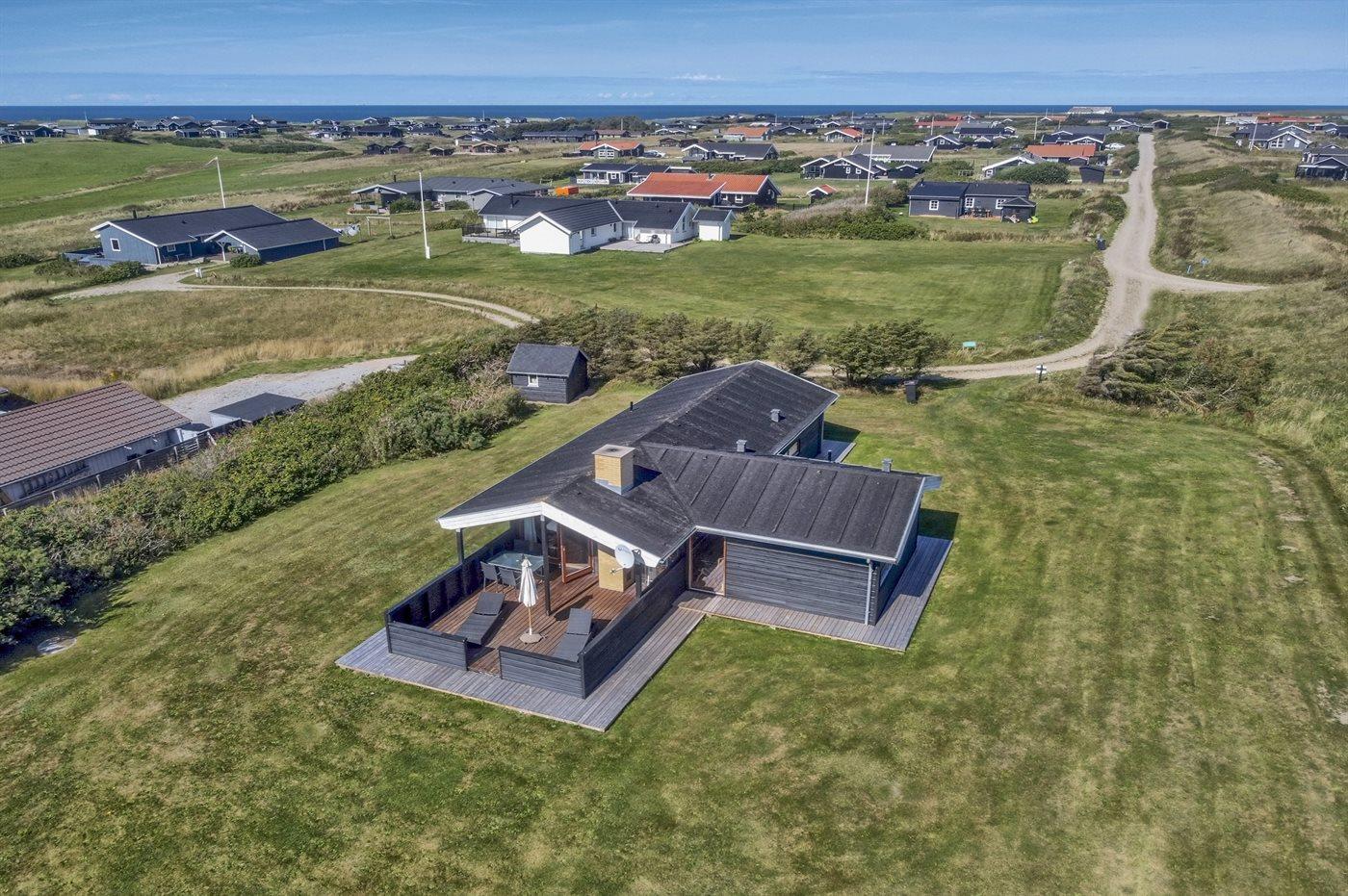 Ferieboligen er beliggende på en 1500 m² stor naturgrund. Der er 800 m til havet. Nærmeste forretning er beliggende i en afstand af 2000 m. Til ferieboligen hører åbent terrasseareal. Desuden er der overdækket terrasse. Grill til rådighed. Der er installeret stik til opladning af elbil. Parkering ved ferieboligen.
