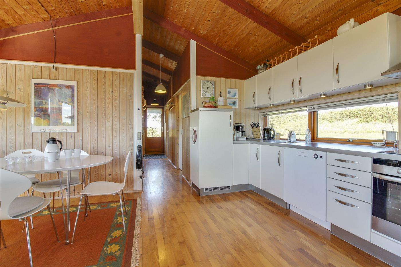 Køkkenet er udstyret med 1 køleskab. Der er 4 keramiske kogeplader, miniovn, varmluftovn, mikrobølgeovn samt opvaskemaskine.