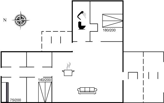 Der er i alt 3 soveværelser. Sovepladserne fordeler sig på: 4 sovepladser i dobbeltsenge. 2 sovepladser i køjeseng.