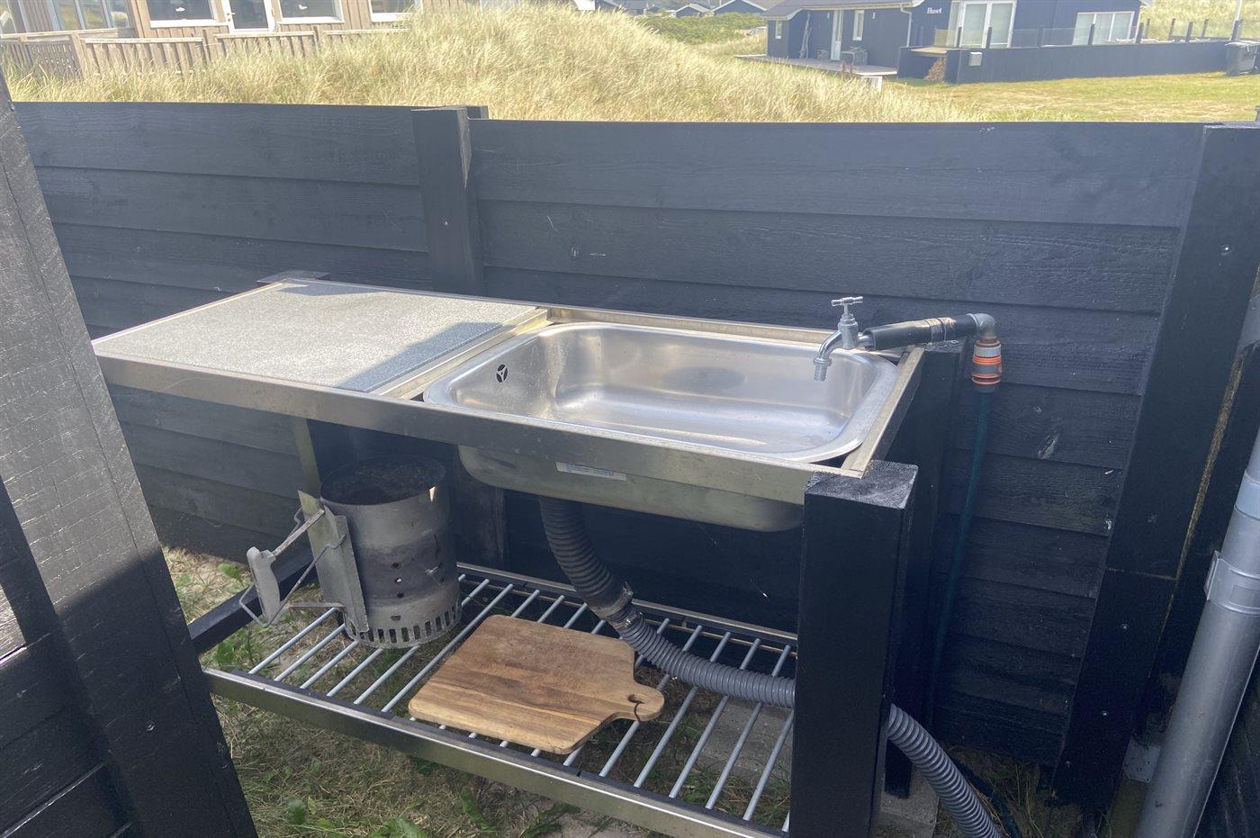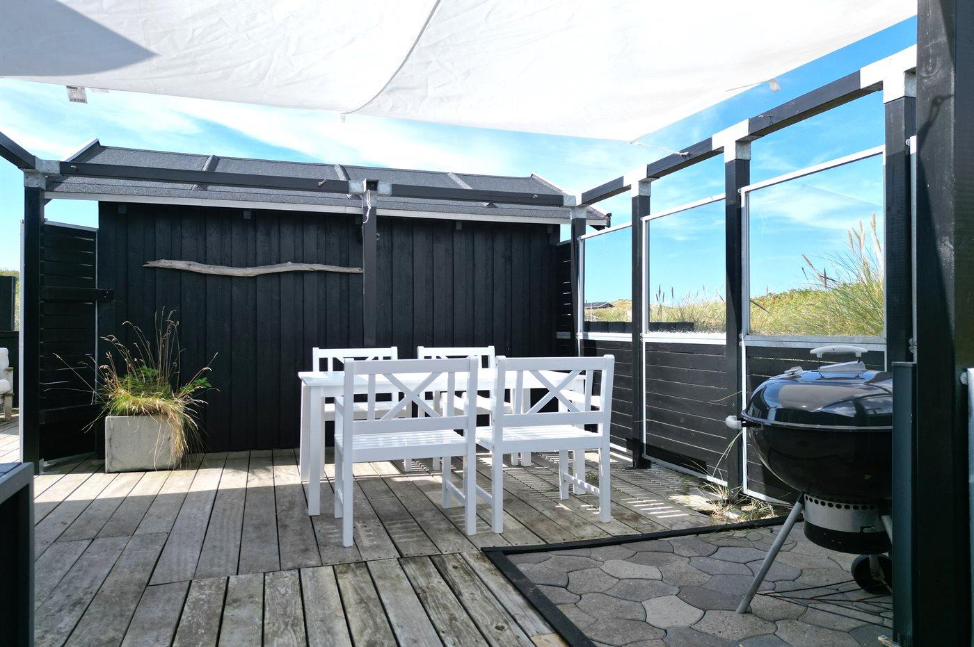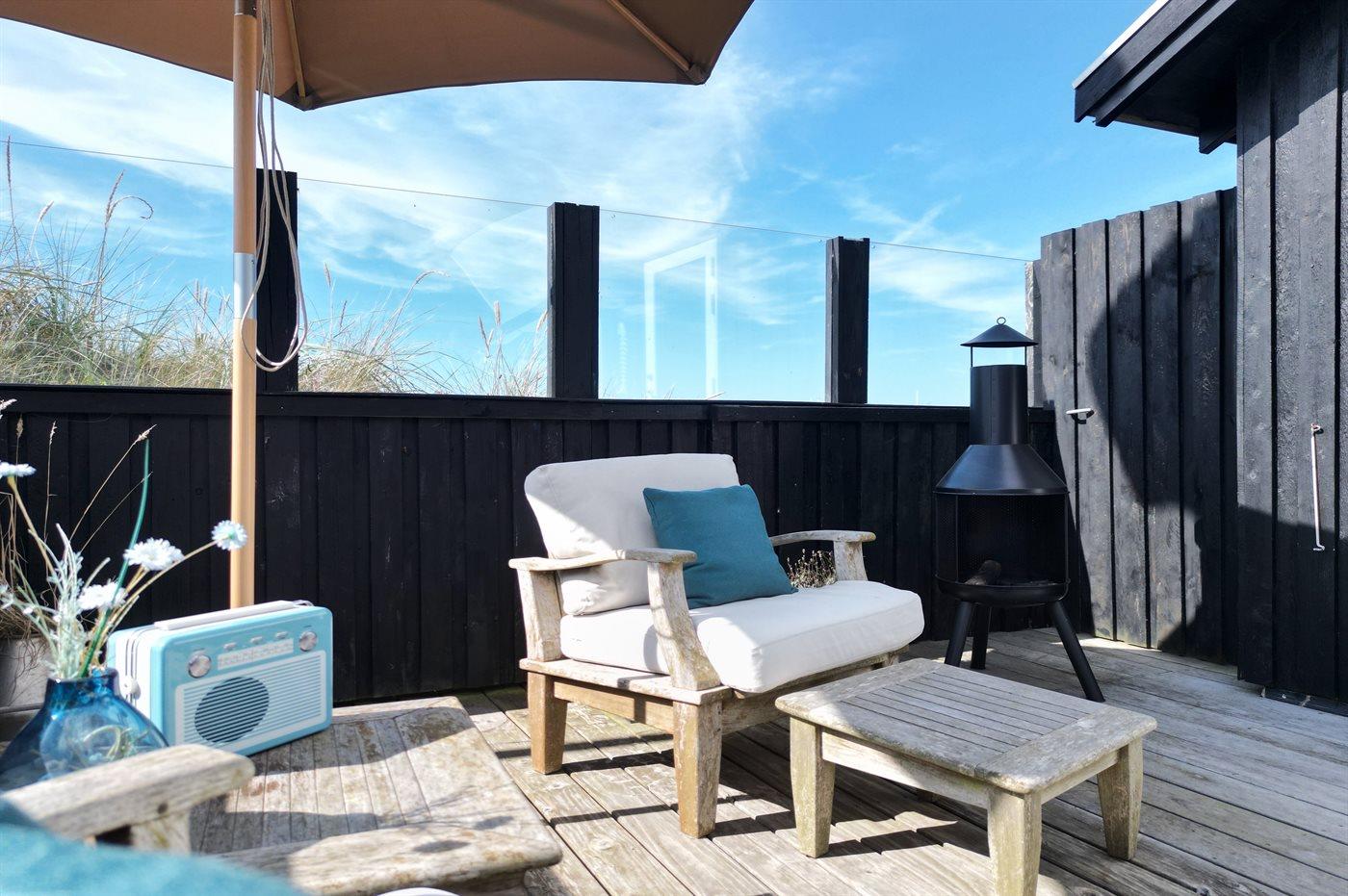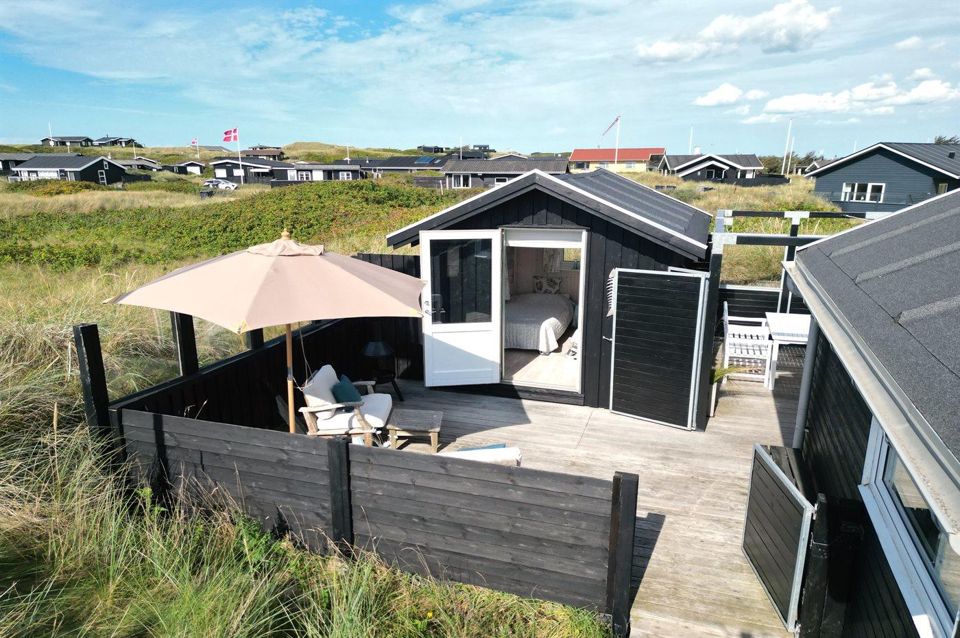 Ferieboligen er beliggende på en 700 m² stor naturgrund. Der er 200 m til havet. Nærmeste forretning er beliggende i en afstand af 500 m. Til ferieboligen hører åbent terrasseareal. Udendørs bruser. Grill til rådighed. Parkering ved ferieboligen.