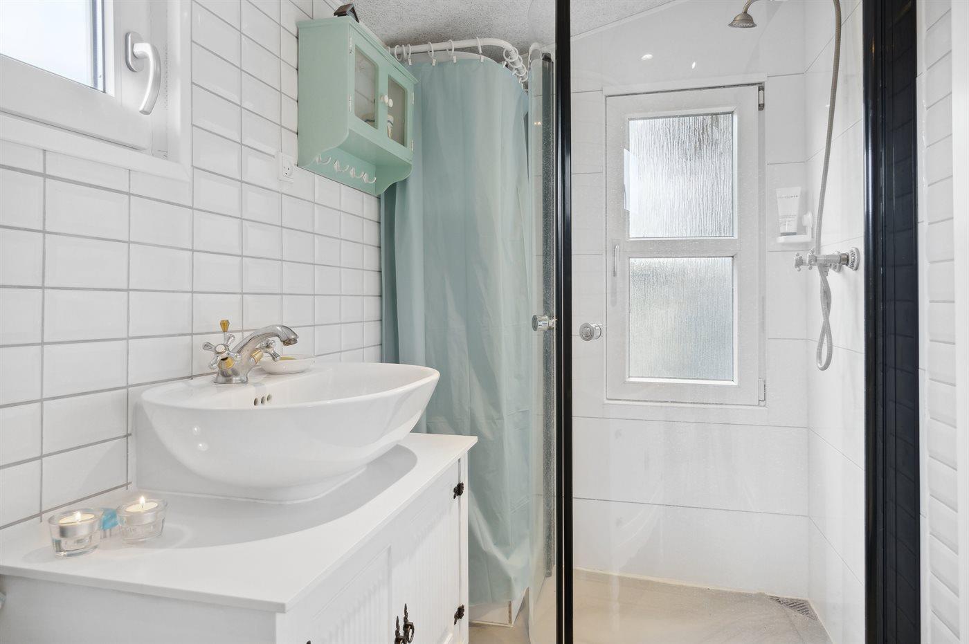 Der er 1 badeværelse med bruseniche og 1 toilet.. Der er gulvvarme på 1 badeværelse.