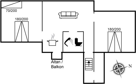 Der er i alt 2 soveværelser. Sovepladserne fordeler sig på: 4 sovepladser i enkeltsenge.