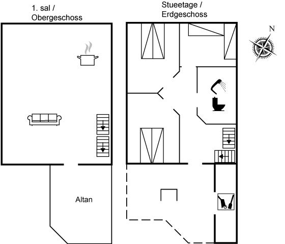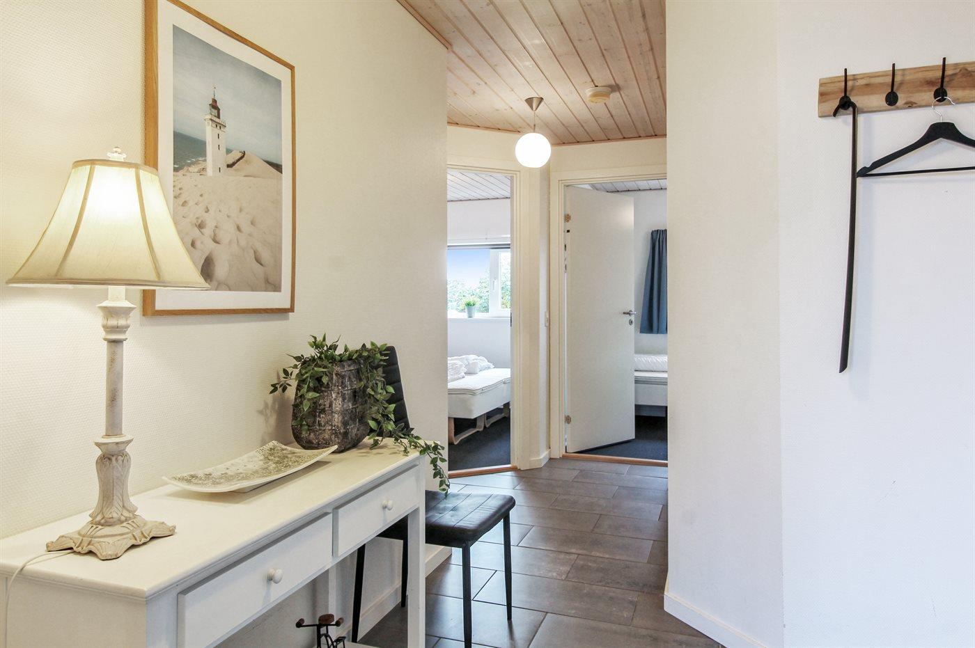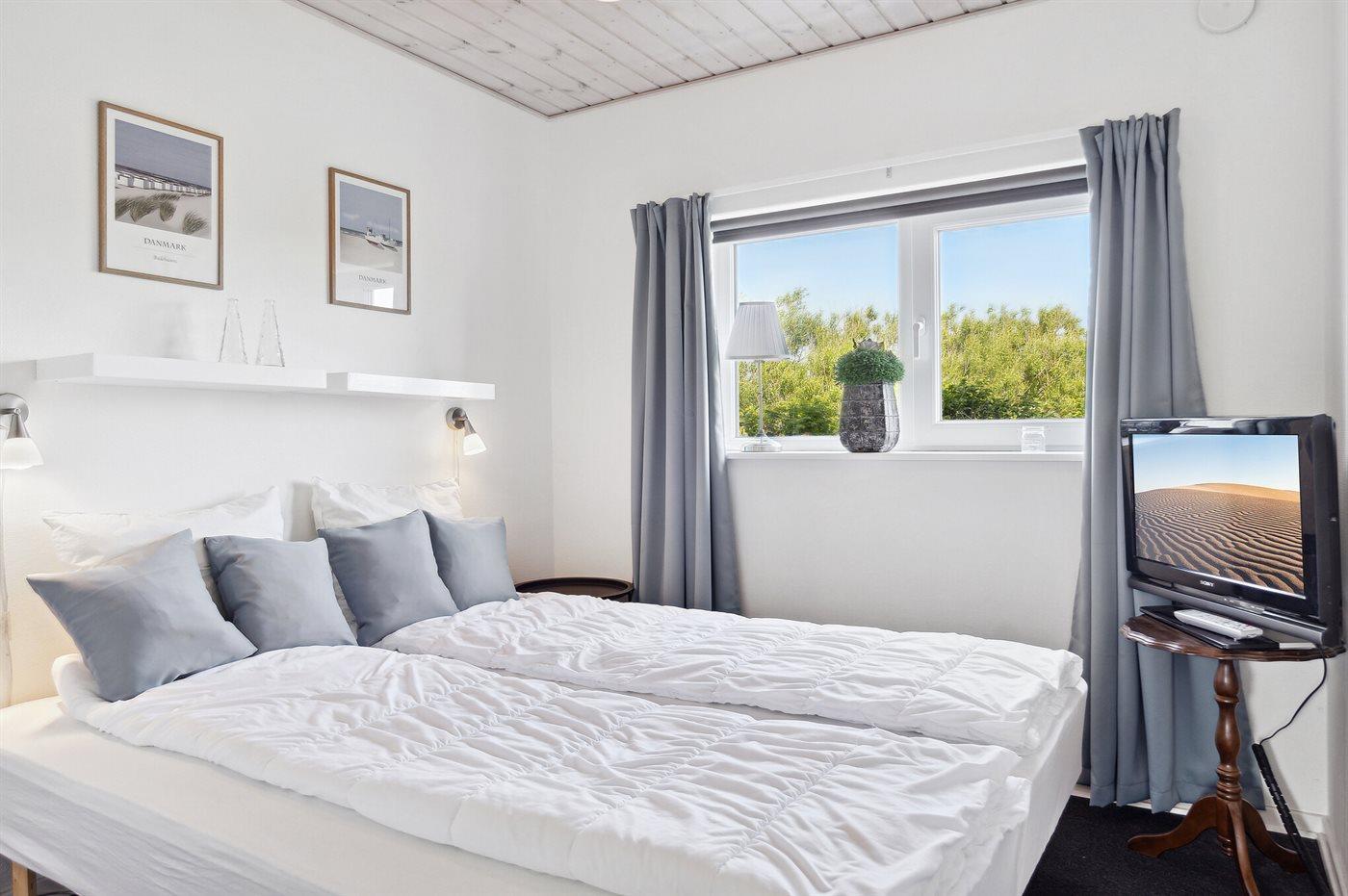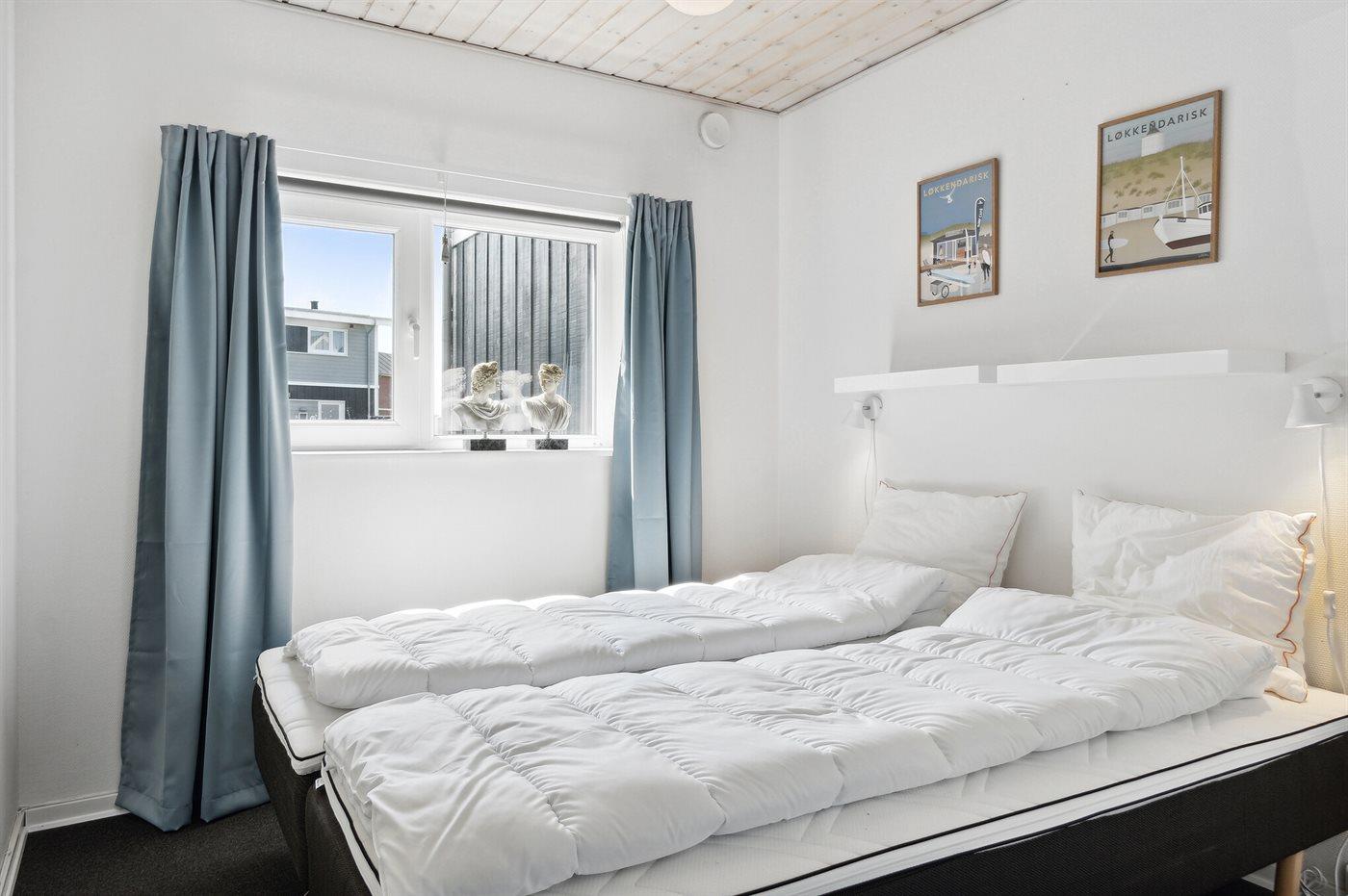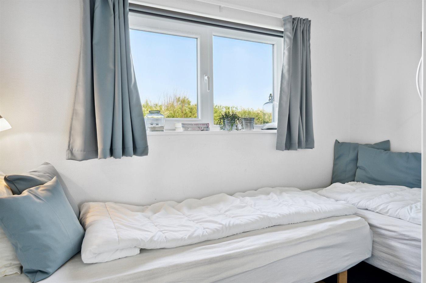 Der er i alt 3 soveværelser. Sovepladserne fordeler sig på: 4 sovepladser i dobbeltsenge. 2 sovepladser i enkeltsenge. 2 sovepladser på madrasser.- 2 af disse sovepladser befinder sig på husets hems. Derudover er der 1 stk. barneseng.