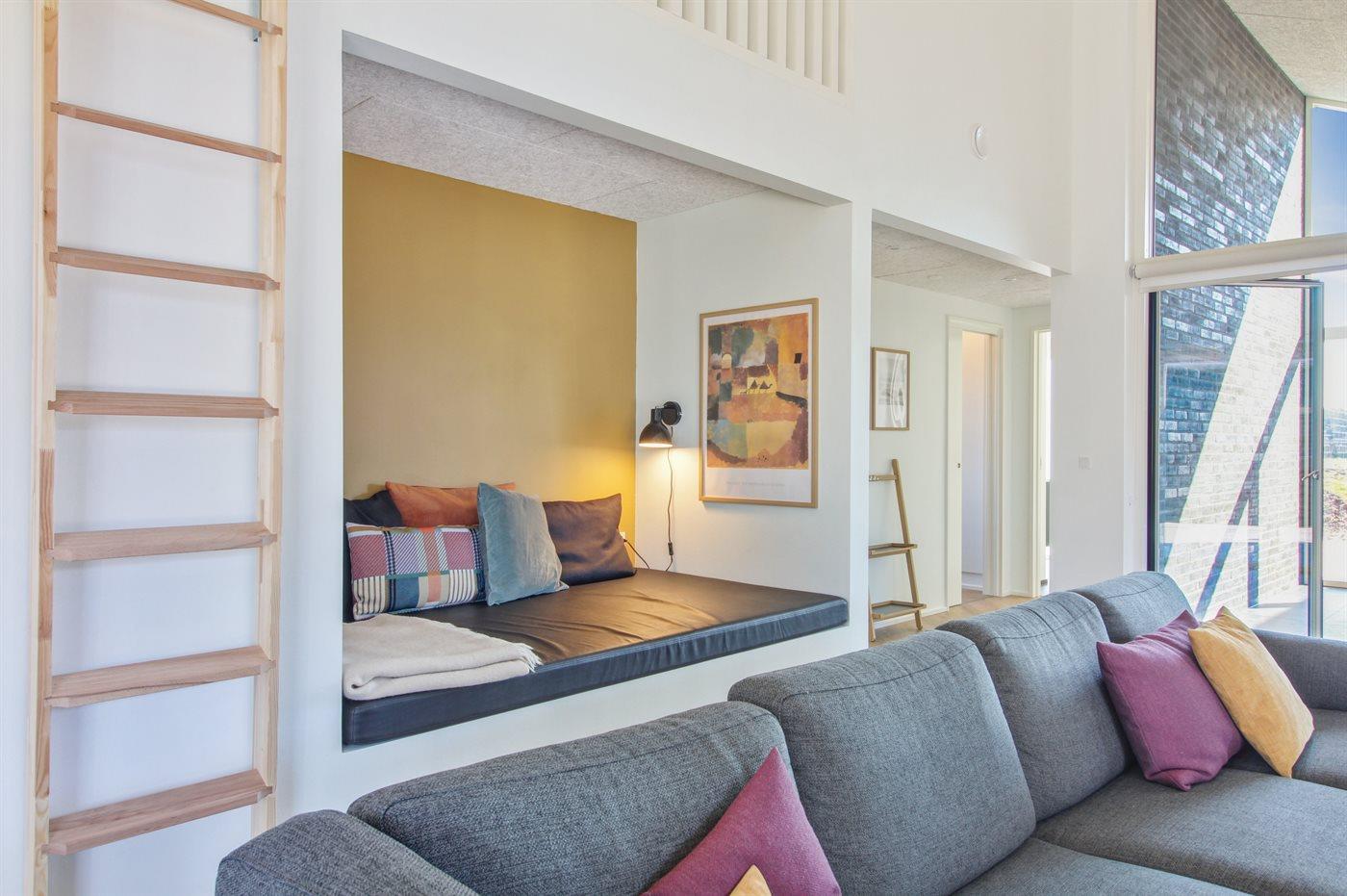 I husets opholdsstue findes der en alkove, hvor man kan slappe af med en god bog eller børnene kan hygge sig med et brætspil.