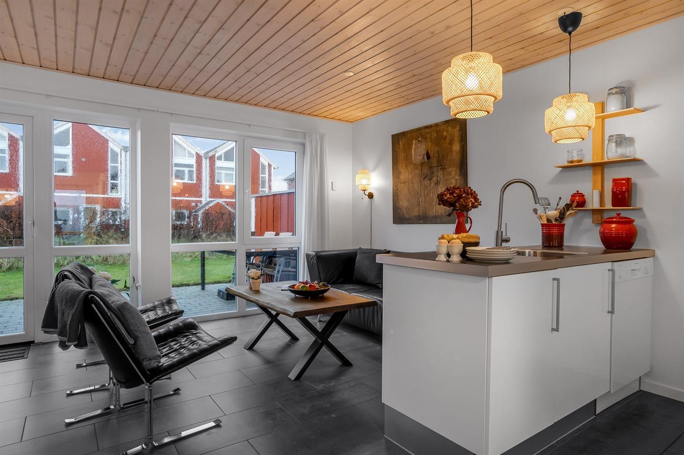 Velkommen til dette hyggelige og velindrettede rækkehus i Feriepark Nordenlys, perfekt beliggende tæt på Løkken centrum og Vesterhavet.