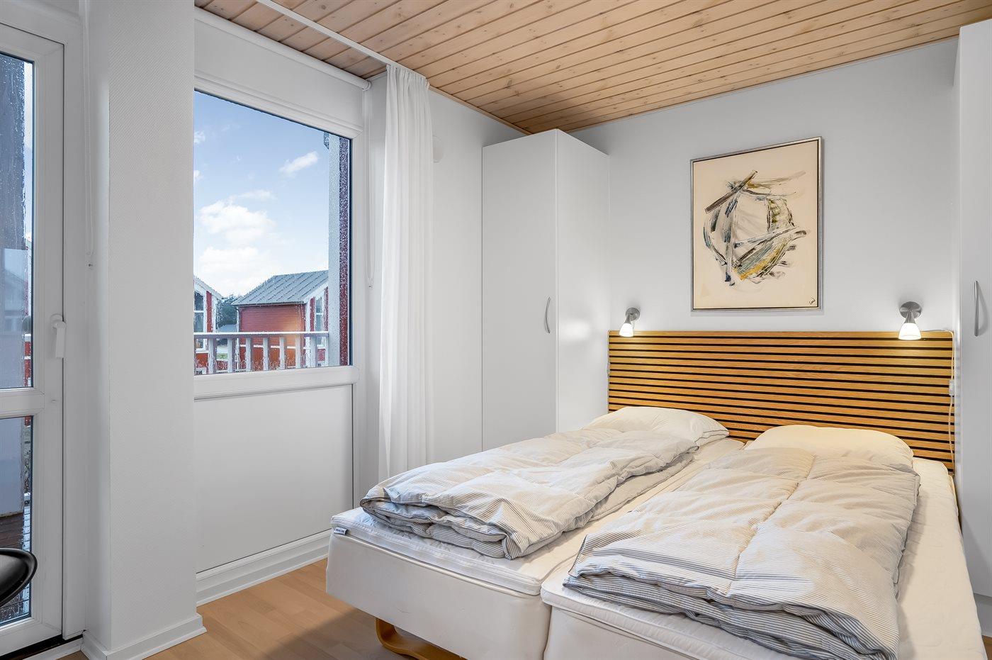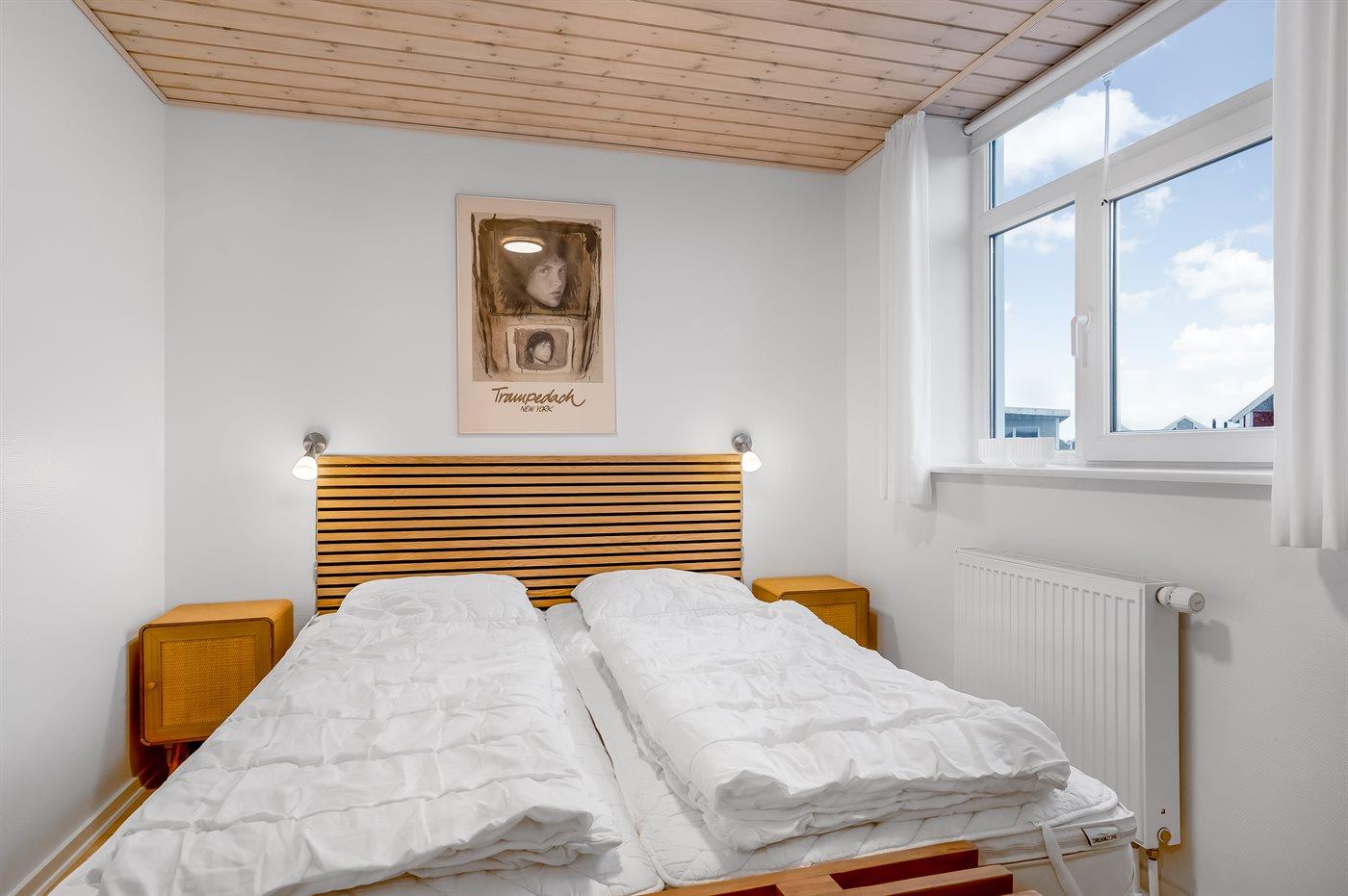 Der er i alt 2 soveværelser. Sovepladserne fordeler sig på: 4 sovepladser i enkeltsenge. 2 sovepladser på madrasser. 2 af disse sovepladser befinder sig på husets hems.
