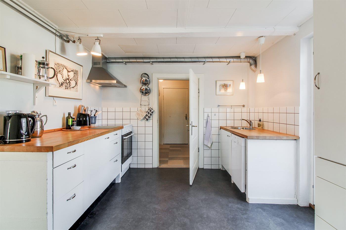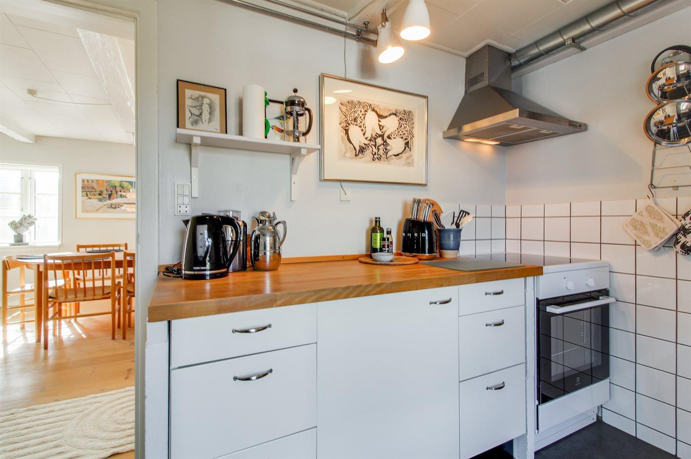Køkkenet er udstyret med 1 køleskab. Der er 4 induktionskogeplader, varmluftovn, mikrobølgeovn samt opvaskemaskine.