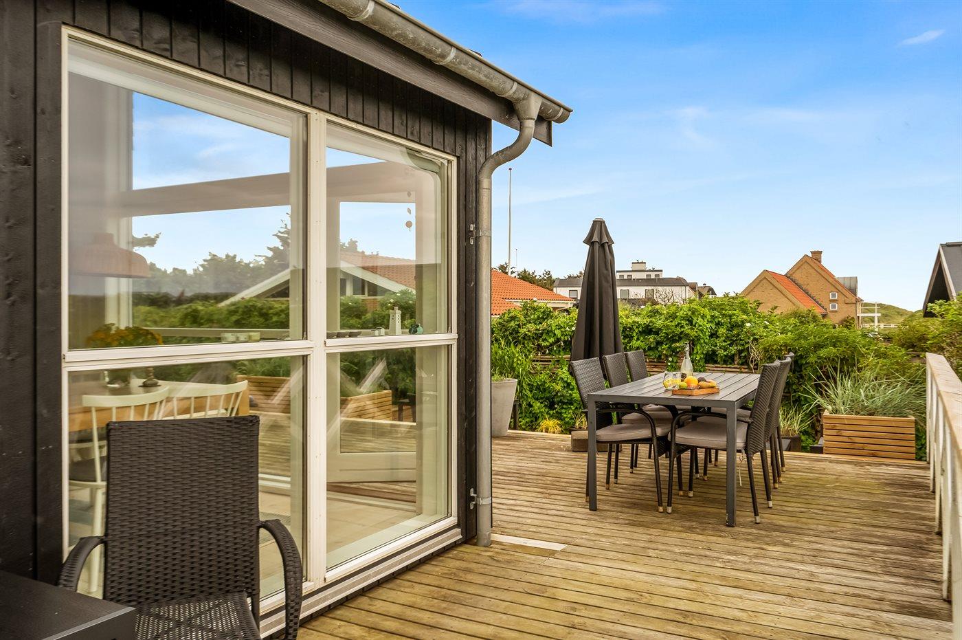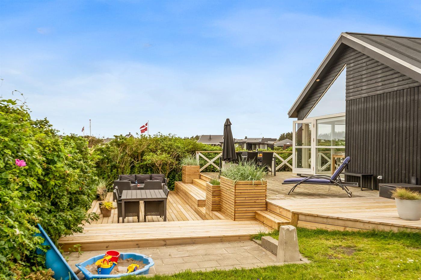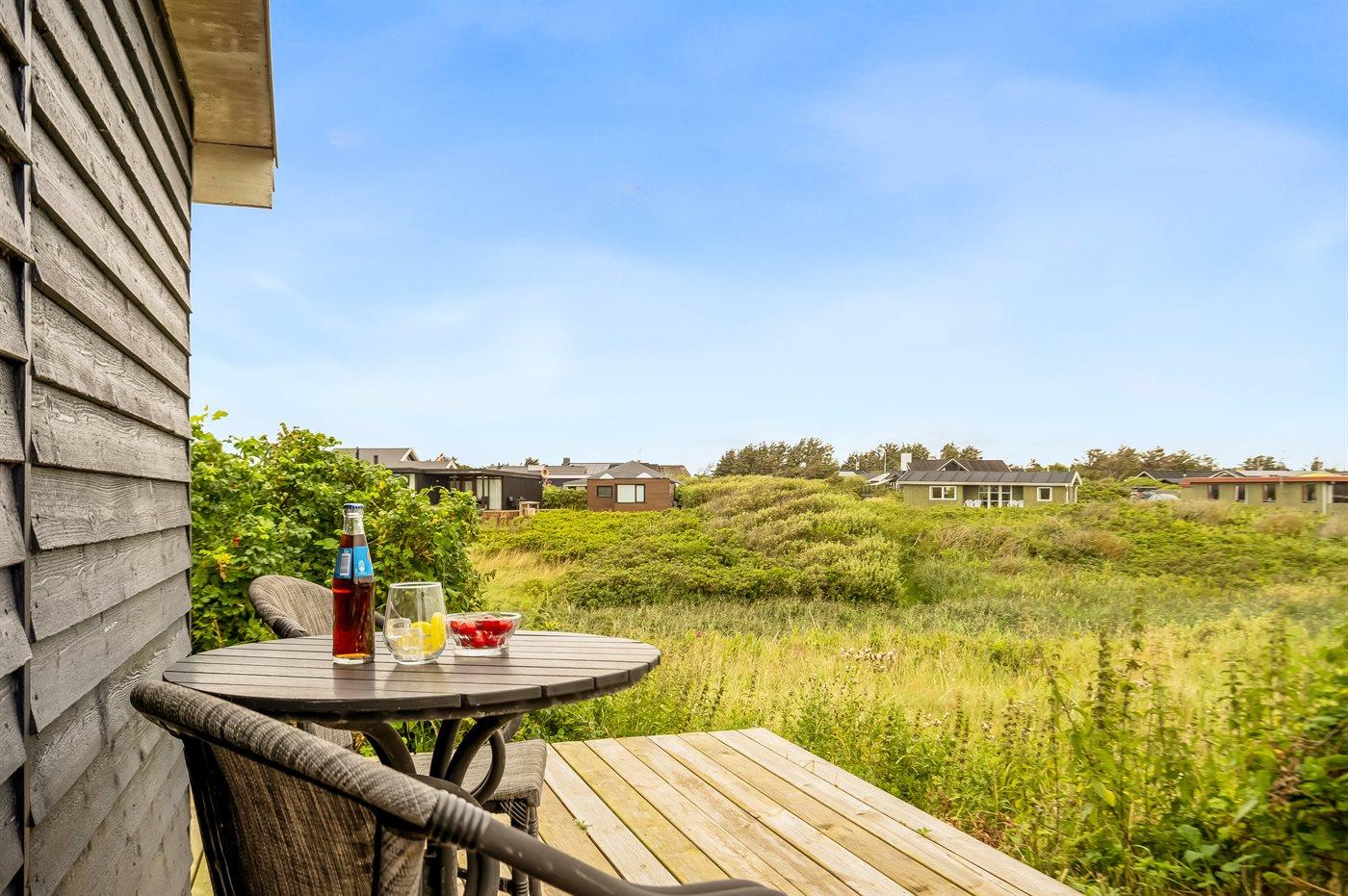 Ferieboligen er beliggende på en 802 m² stor naturgrund. Der er 400 m til havet. Nærmeste forretning er beliggende i en afstand af 350 m. Til ferieboligen hører åbent terrasseareal. Sandkasse. Grill til rådighed. Parkering ved ferieboligen.